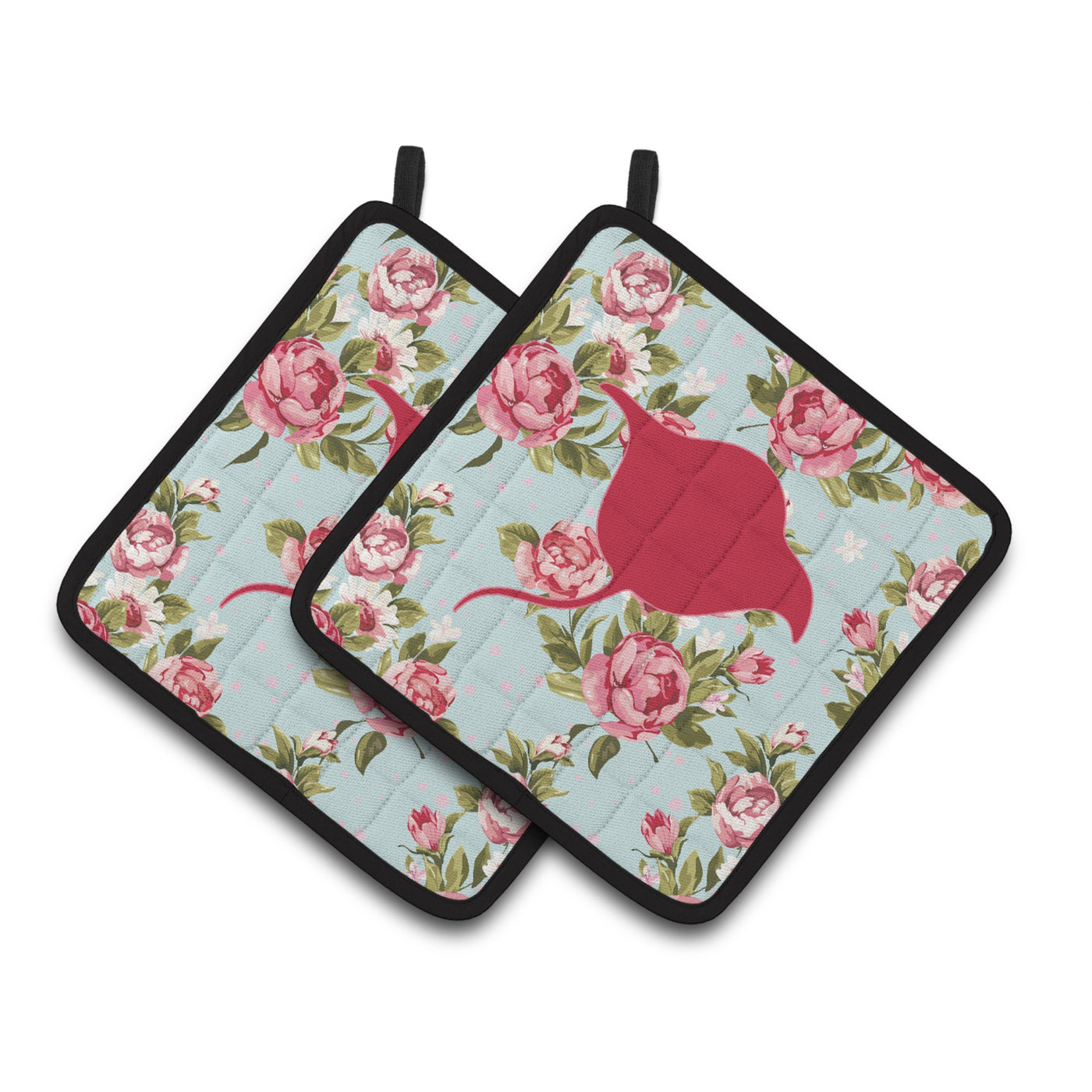 'Caroline's Treasures Stingray Shabby Chic Blue Roses Pair of Pot Holders BB1094-RS-BU-PTHD 7.5HX7.5W Multicolor''