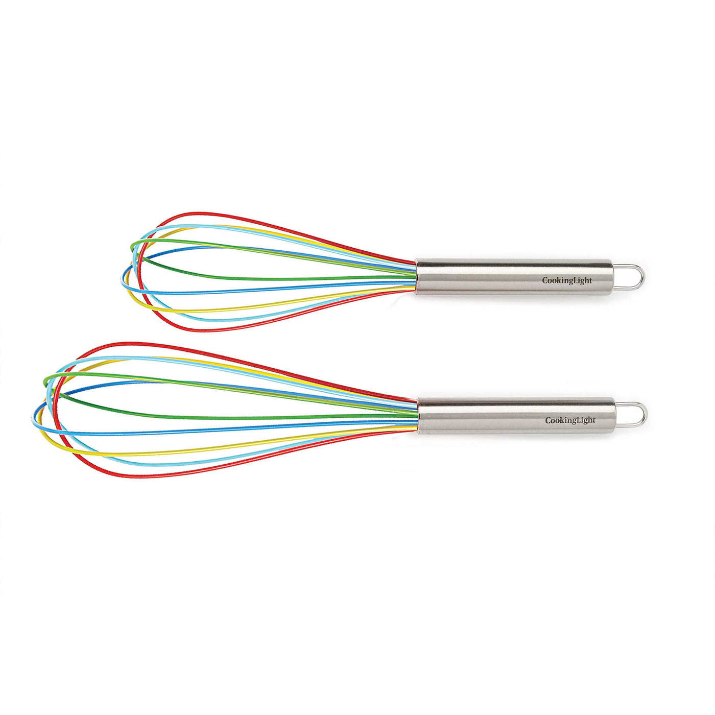 • Q: What sizes are included in the Cooking Light silicone whisk set? A: The set includes two whisks: a 9-inch silicone balloon whisk and an 11-inch silicone balloon whisk.