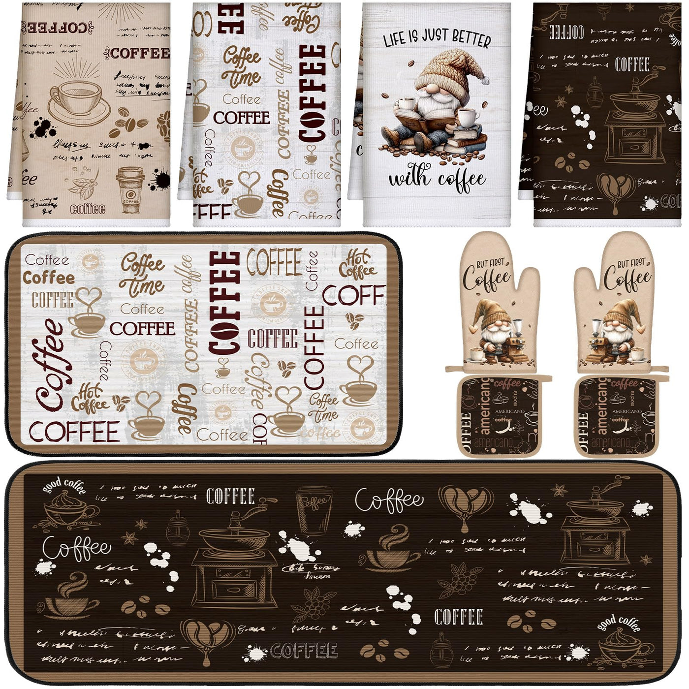 Fourluoo 10 Pcs Coffee Kitchen Decor and Accessories Oven Mitts and Pot Holders Set Coffee Dish Towels Rugs Farmhouse Kitchen De