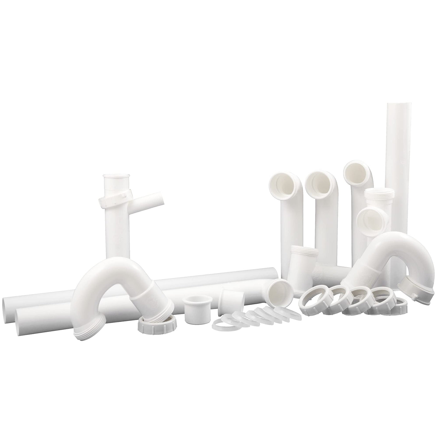 Product Descriptioncomplete Kitchen Drain Repair Kit. Contains Two Outlet Connection Types (Center Outlet Tee Or End Outlet Tee). 27 Pieces For Multiple Installation Options: (1) 1 1/2 Tee Center Outlet, (1) 1 1/2 Wall Tube, (1) 1 1/2 J-Bend, (2) 1 1/2 X 7 Waster Arm, (7) 1 1/2 Slip Nuts, (7) 1 1/2 Poly Washers, (2) 1 1/2 X 1 1/4 Short Tailpieces, (1) 1 1/2 X 17 Floor Tube, (1) 1 1/2 Female J-Bend, (1) 1 1/2 End Outlet Tee, (1) 1 1/2 X 15 Waste Arm, (1) 1 1/2 X 12 Flange Tailpiece, (1) 1 1/2 Dishwasher Tailpiece. Installs To Floor Or Wall. Two Outlet Connection Types: Center Outlet Tee Connection Or End Outlet Tee Connection. Slip Connect Or Direct Connect Option. Universal Installation Easy To Install With Or Without Garbage Disposal Connections. Trust Plumbcraft With All Of Your Toilet Care And Repair Needs The Brand That Plumbers Have Trusted For More Than 50 Years. Complete Kitchen Drain Repair Kit. Contains Two Outlet Connection Types (Center Outlet Tee Or End Outlet Tee). 27 Pieces For Multiple Installation Options: (1) 1 1/2 Tee Center Outlet, (1) 1 1/2 Wall Tube, (1) 1 1/2 J-Bend, (2) 1 1/2 X 7 Waster Arm, (7) 1 1/2 Slip Nuts, (7) 1 1/2 Poly Washers, (2) 1 1/2 X 1 1/4 Short Tailpieces, (1) 1 1/2 X 17 Floor Tube, (1) 1 1/2 Female J-Bend, (1) 1 1/2 End Outlet Tee, (1) 1 1/2 X 15 Waste Arm, (1) 1 1/2 X 12 Flange Tailpiece, (1) 1 1/2 Dishwasher Tailpiece. Installs To Floor Or Wall. Two Outlet Connection Types: Center Outlet Tee Connection Or End Outlet Tee Connection. Slip Connect Or Direct Connect Option. Universal Installation Easy To Install With Or Without Garbage Disposal Connectionsfrom The Manufacturercomplete Kitchen Drain Repair Kit. Contains Two Outlet Connection Types (Center Outlet Tee Or End Outlet Tee). 27 Pieces For Multiple Installation Options: (1) 1 1/2 Tee Center Outlet, (1) 1 1/2 Wall Tube, (1) 1 1/2 J-Bend, (2) 1 1/2 X 7 Waster Arm, (7) 1 1/2 Slip Nuts, (7) 1 1/2 Poly Washers, (2) 1 1/2 X 1 1/4 Short Tailpieces, (1) 1 1/2 X 17 Floor Tube, (1) 1 1/2 Female J-Bend, (1) 1 1/2 End Outlet Tee, (1) 1 1/2 X 15 Waste Arm, (1) 1 1/2 X 12 Flange Tailpiece, (1) 1 1/2 Dishwasher Tailpiece. Installs To Floor Or Wall. Two Outlet Connection Types: Center Outlet Tee Connection Or End Outlet Tee Connection. Slip Connect Or Direct Connect Option. Universal Installation Easy To Install With Or Without Garbage Disposal Connections