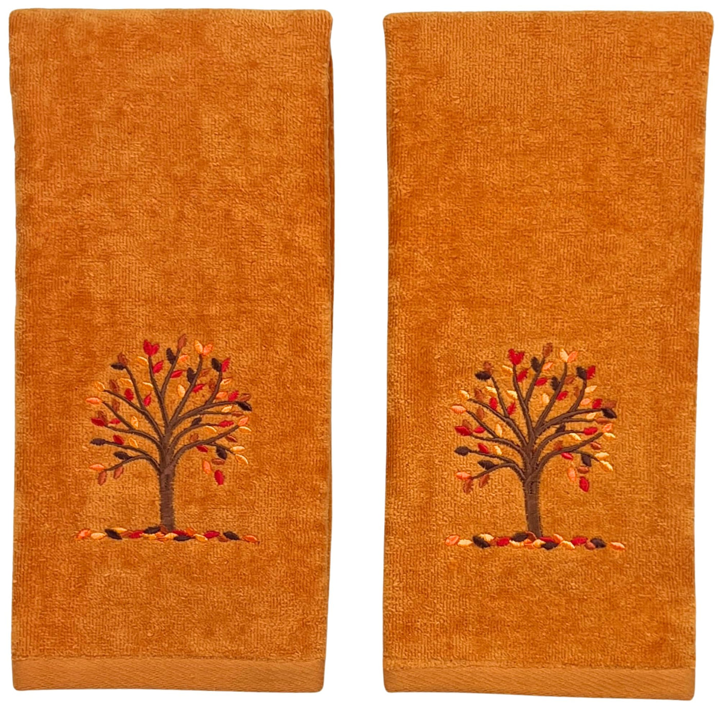 Serafina Home Fall Bath Hand Towels Bathroom Decor Farmhouse : Terracotta Rust Cotton Towels With Autumn Tree Falling Leaves 2 P