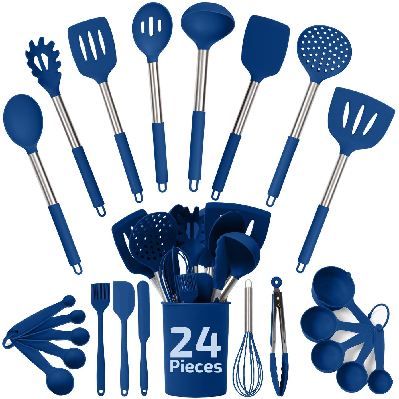 Silicone Kitchen Utensils Set - Culinary Couture 24-Pieces Blue Silicone Cooking Utensils Set For Nonstick Cookware - Silicone S
