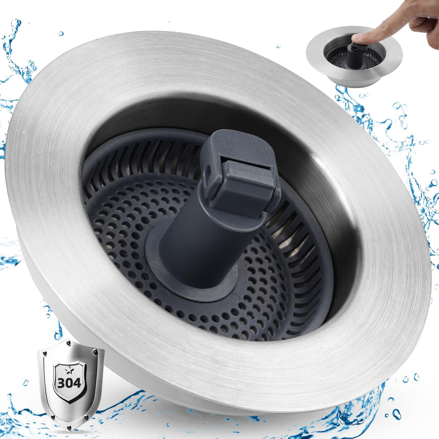 • Q: Can this sink stopper prevent clogs? A: Yes, the design includes a filtration basket that captures food debris, helping to prevent clogs in your plumbing.