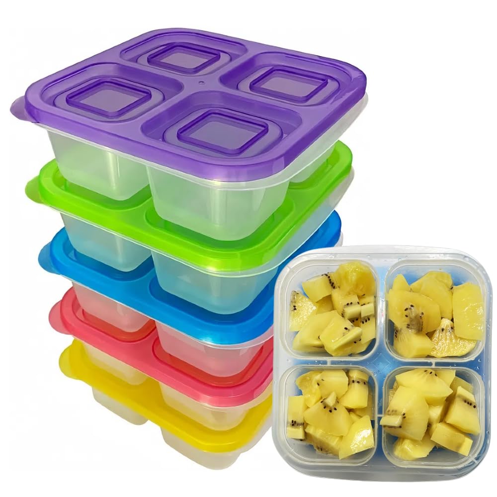 • Q: How many compartments do the Bento Snack Boxes have? A: Each Bento Snack Box features 4 compartments, allowing for versatile meal prep and snack packing.