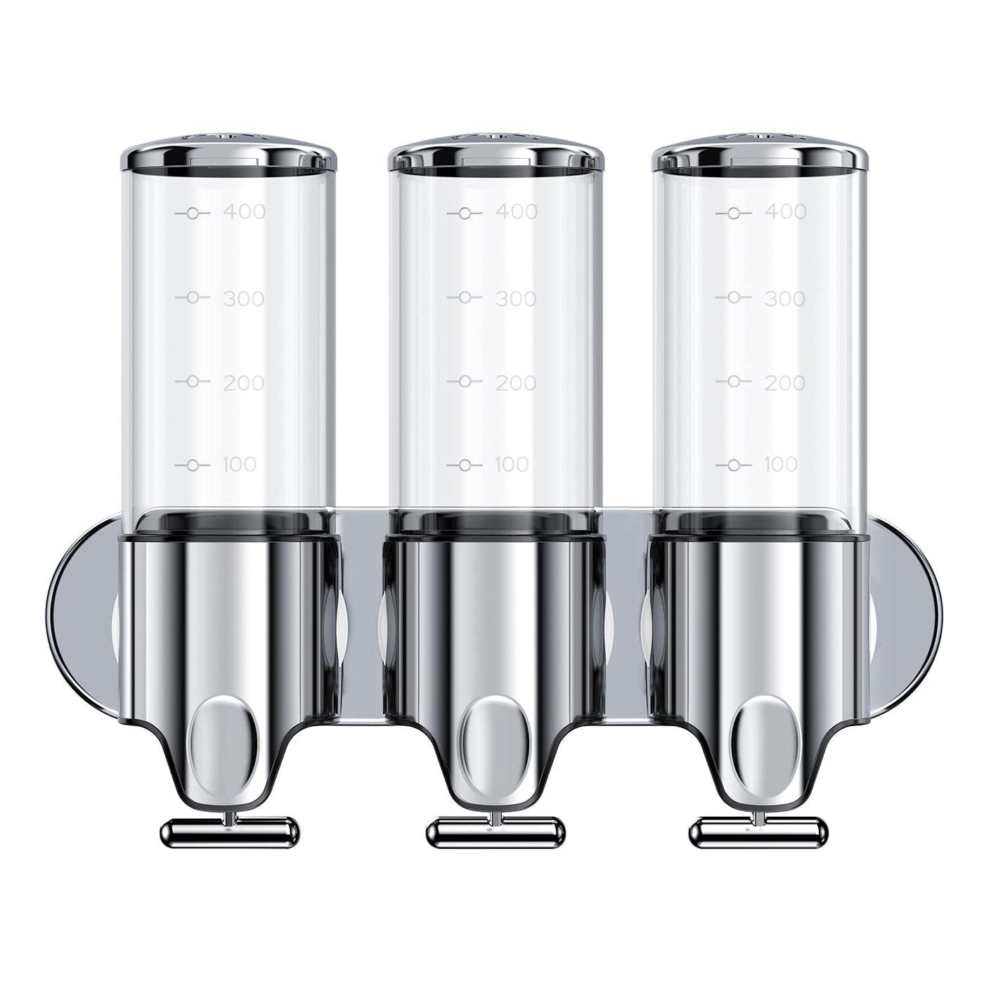 Yiaoz 3 In 1 Chamber Wall Mounted Bathroom Shower Pump Dispenser And Organizer,With Waterproof Label-Holds Shampoo,Conditioner,S