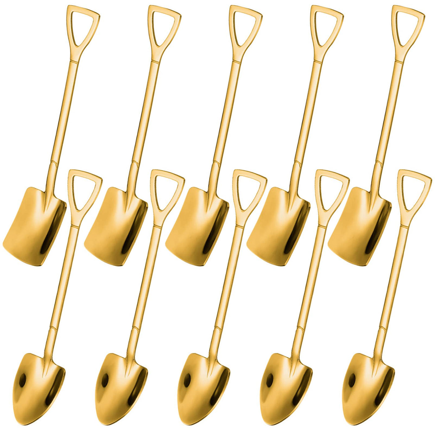 10Pcs Gold Shovel Shape Spoons, Stainless Steel Tea Spoon Coffee Spoon Dessert Spoon, Mini Cute Mixing Spoon Sugar Spoon Cake Sp