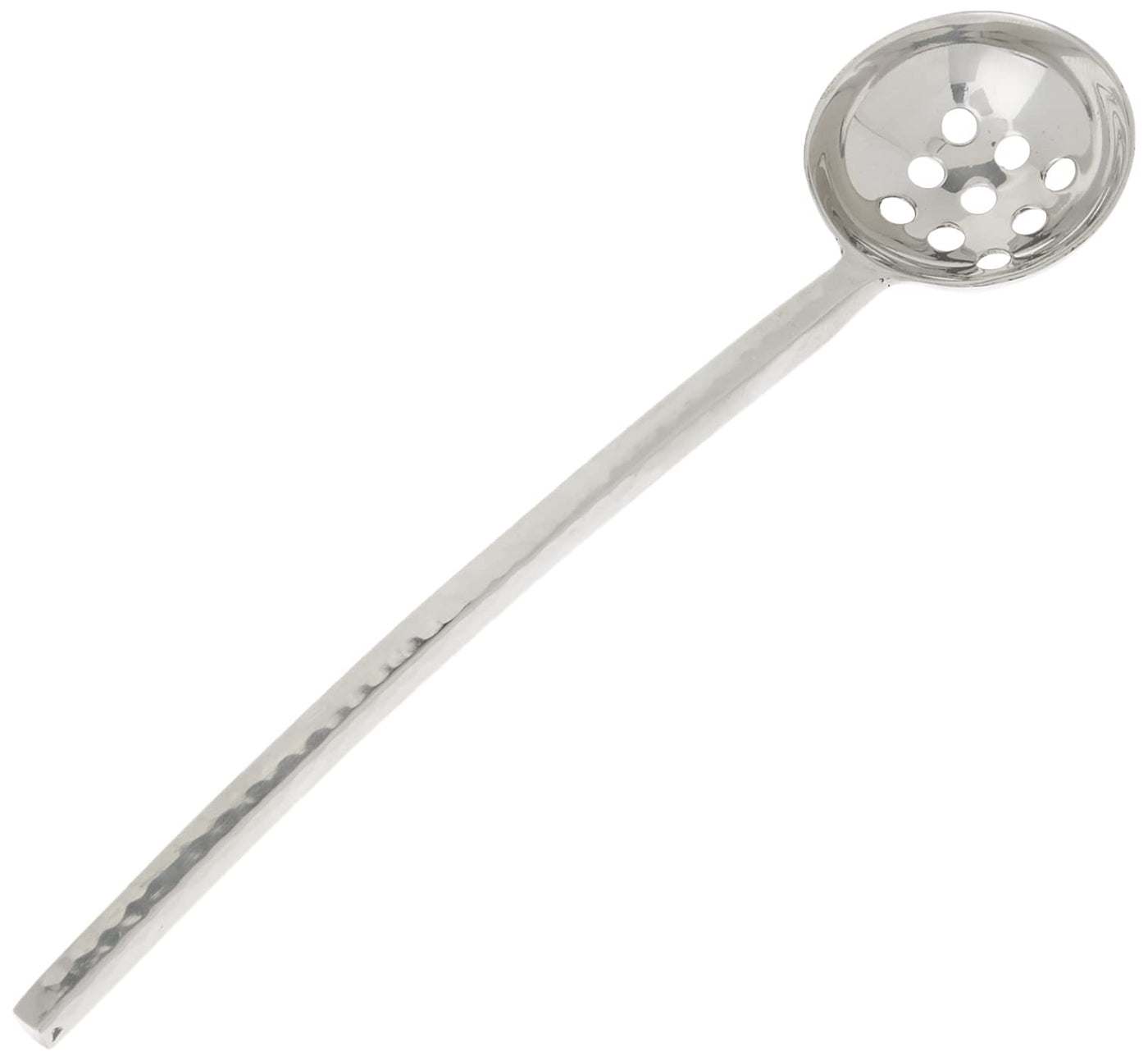 • Q: What design features does the Olive Spoon have? A: The Olive Spoon features a sleek slotted bowl and a hammered handle, adding texture and charm to your serving spread.