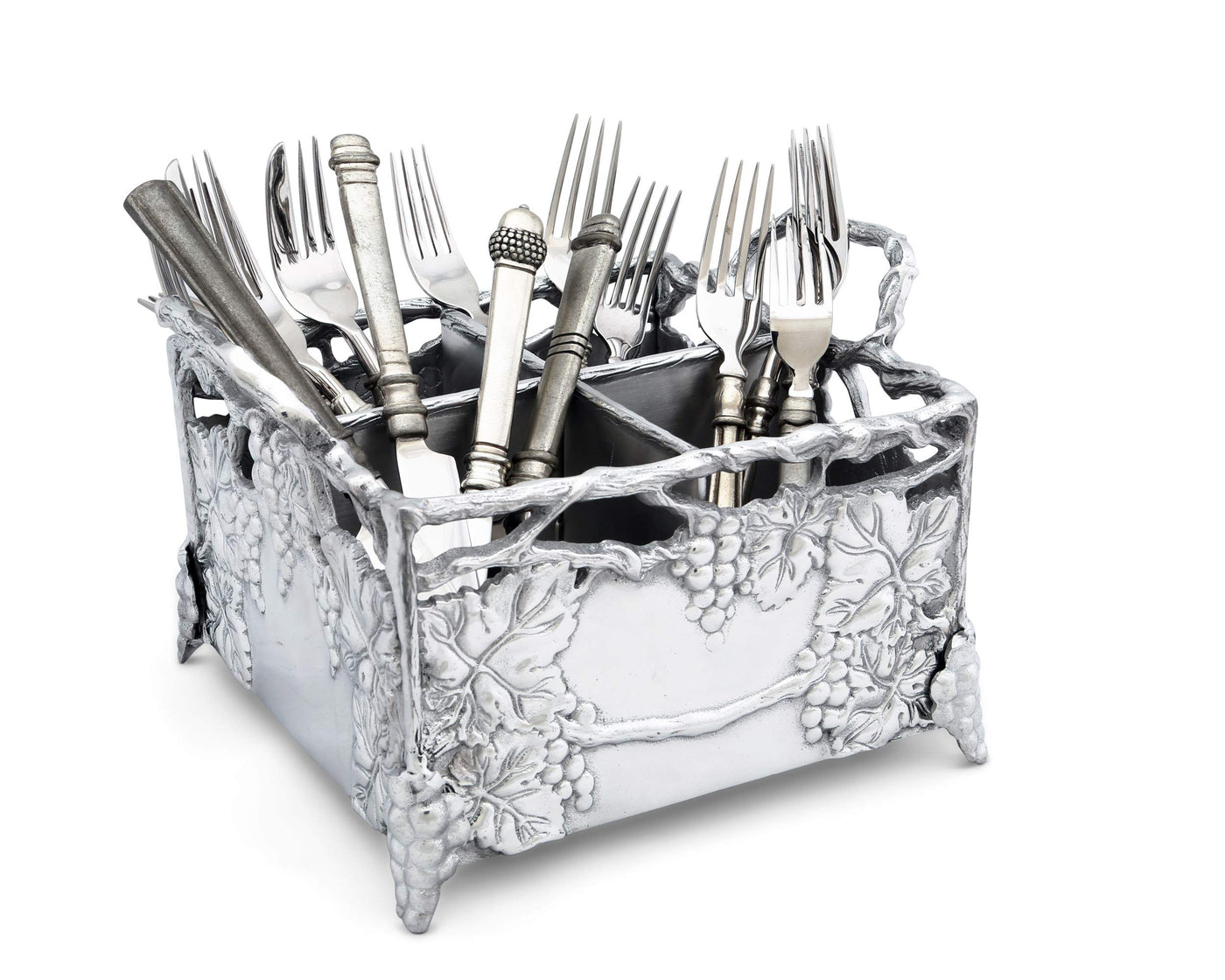 Arthur Court Designs Aluminum Metal Grapevine Flatware Silverware Caddy 8 Inch Square 7 Inch Tall