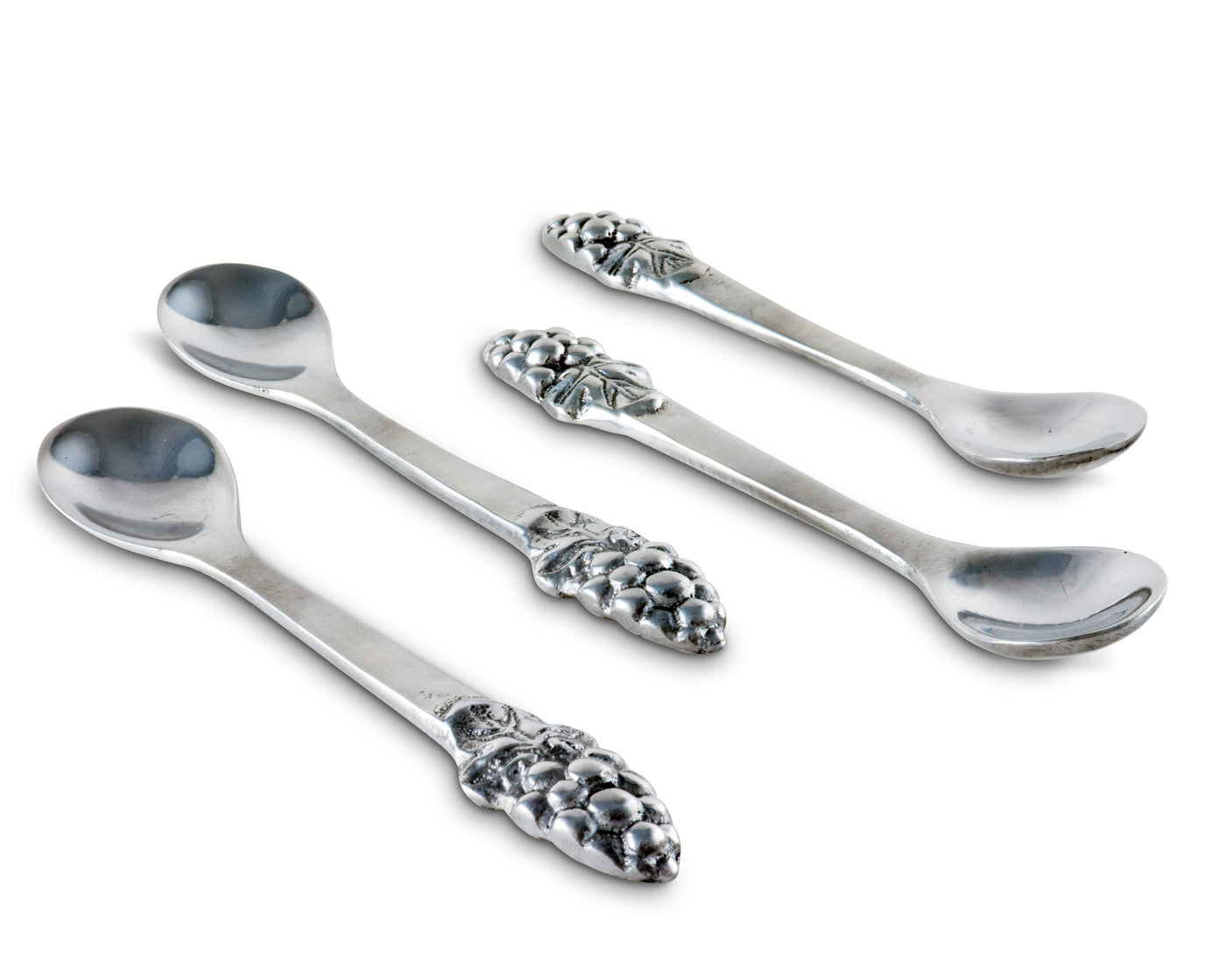 Arthur Court Metal Tea Spoons Grapes Sand Casted In Aluminum With Artisan Quality Hand Polished Set Of 4 5 Inch Long