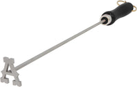 • Q: What are the dimensions of the branding iron's letters? A: The letters on the branding iron measure 1 1/4 inches tall by 7/8 inches wide.