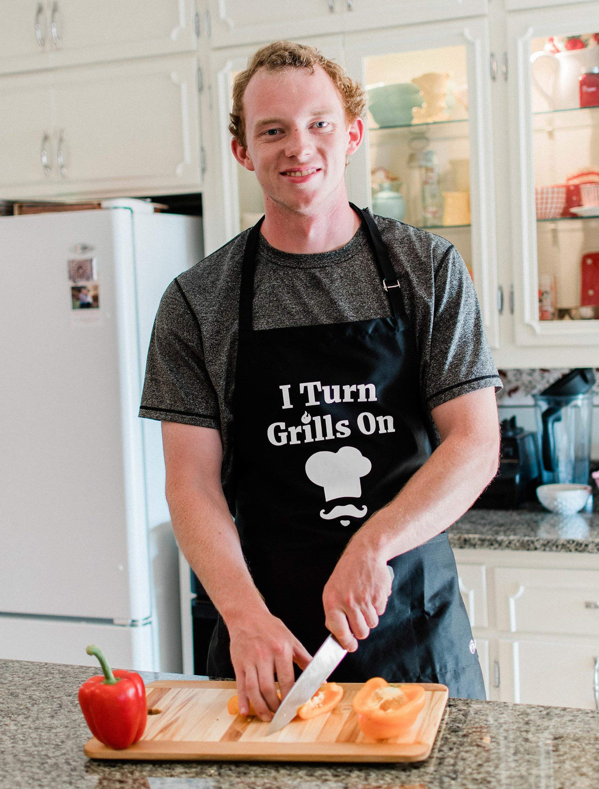 Bbq Grill Apron - I Turn Grills On - Funny Apron For Dad - 1 Size Fits All Chef Apron Poly/Cotton 4 Utility Pockets, Adjustable