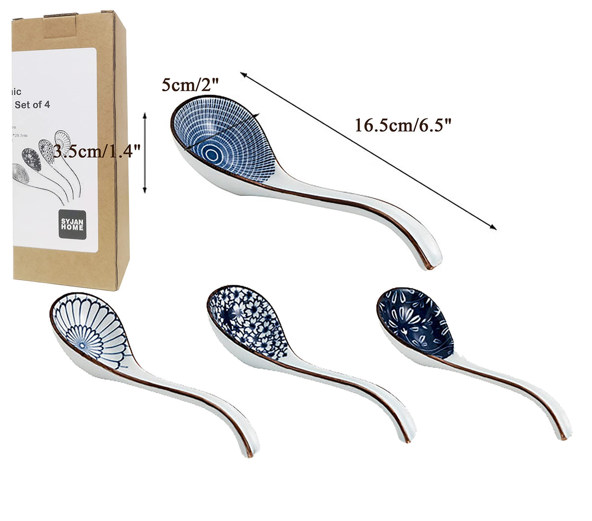 • Q: How do I care for and clean the Ceramic Asian Soup Spoons? A: You can clean them easily by placing them in the dishwasher or washing them by hand due to their smooth, high-density glaze coating.