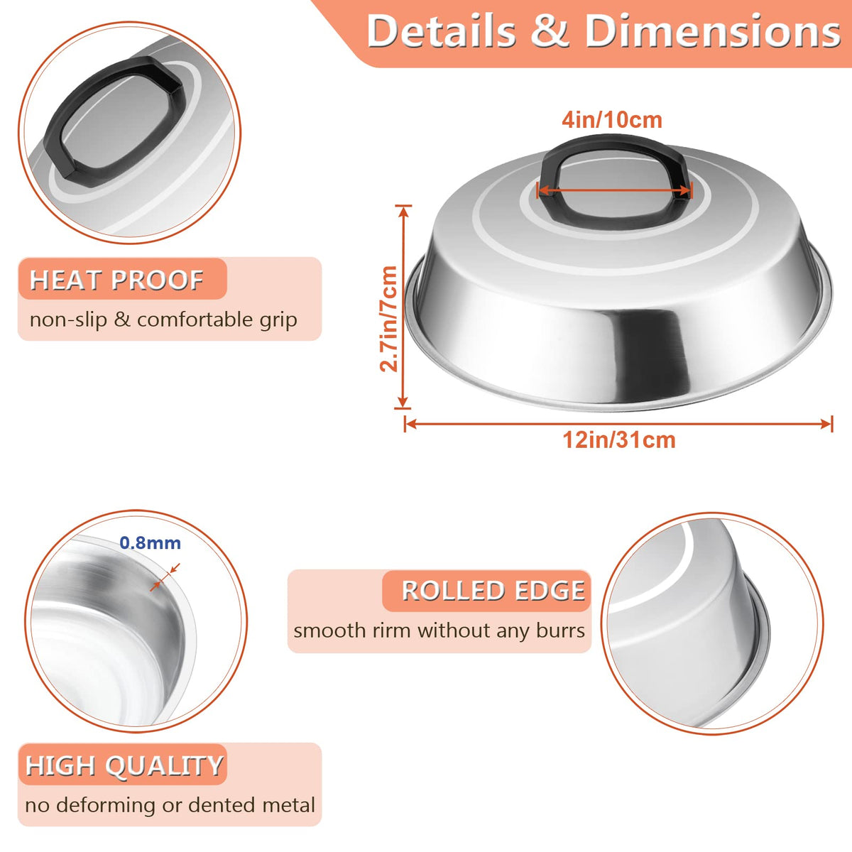 Cheese Melting Dome Set of 3 HaSteeL Stainless Steel Round Basting Steaming Covers Professional Griddle Grill Accessories for Flat Top Teppanyaki BBQ Cooking Indoor & Outdoor (12
