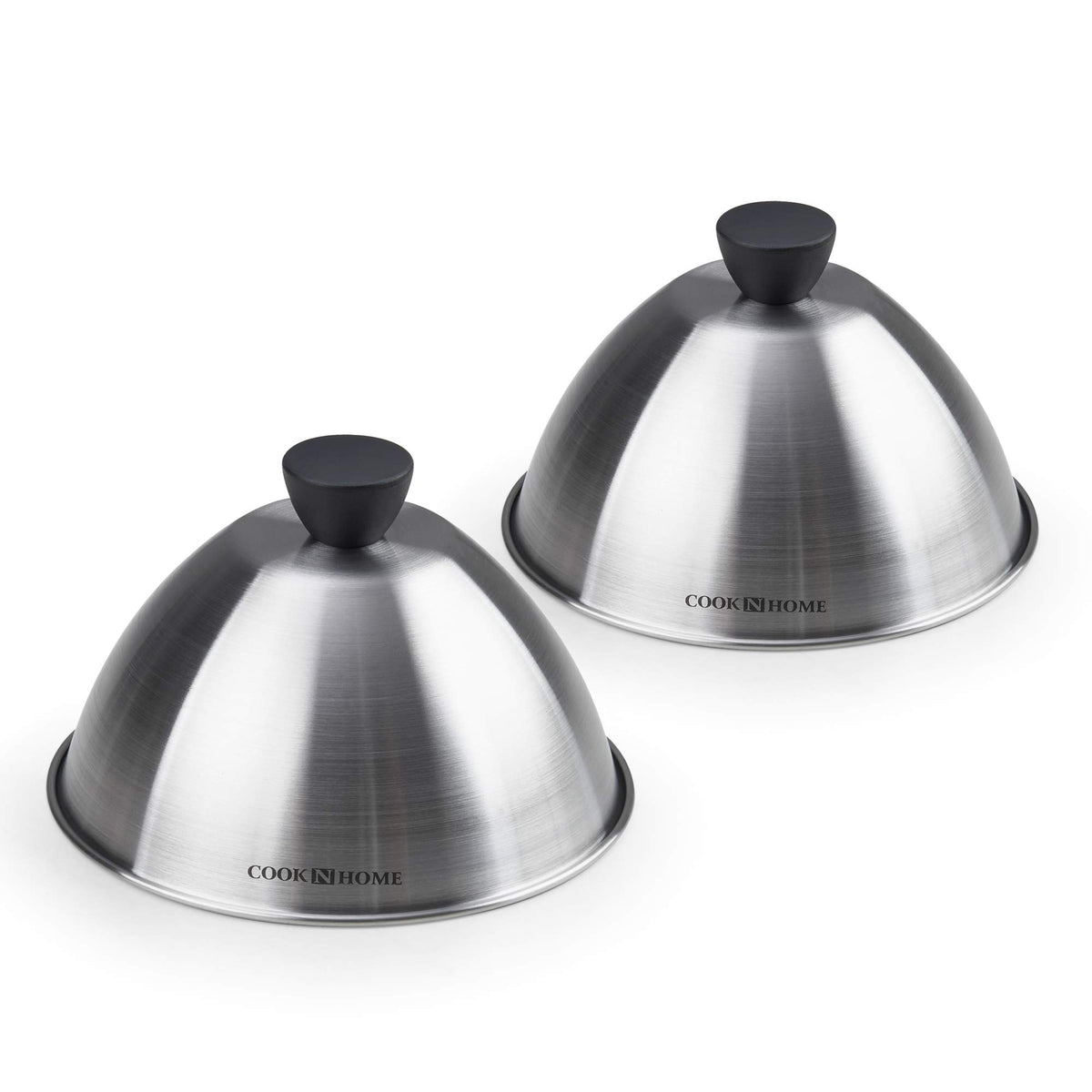 Cook N Home 02664 Stainless Steel Grill Cooking Steaming Dome Lid, 2 Pack, 6 Inches, Silver