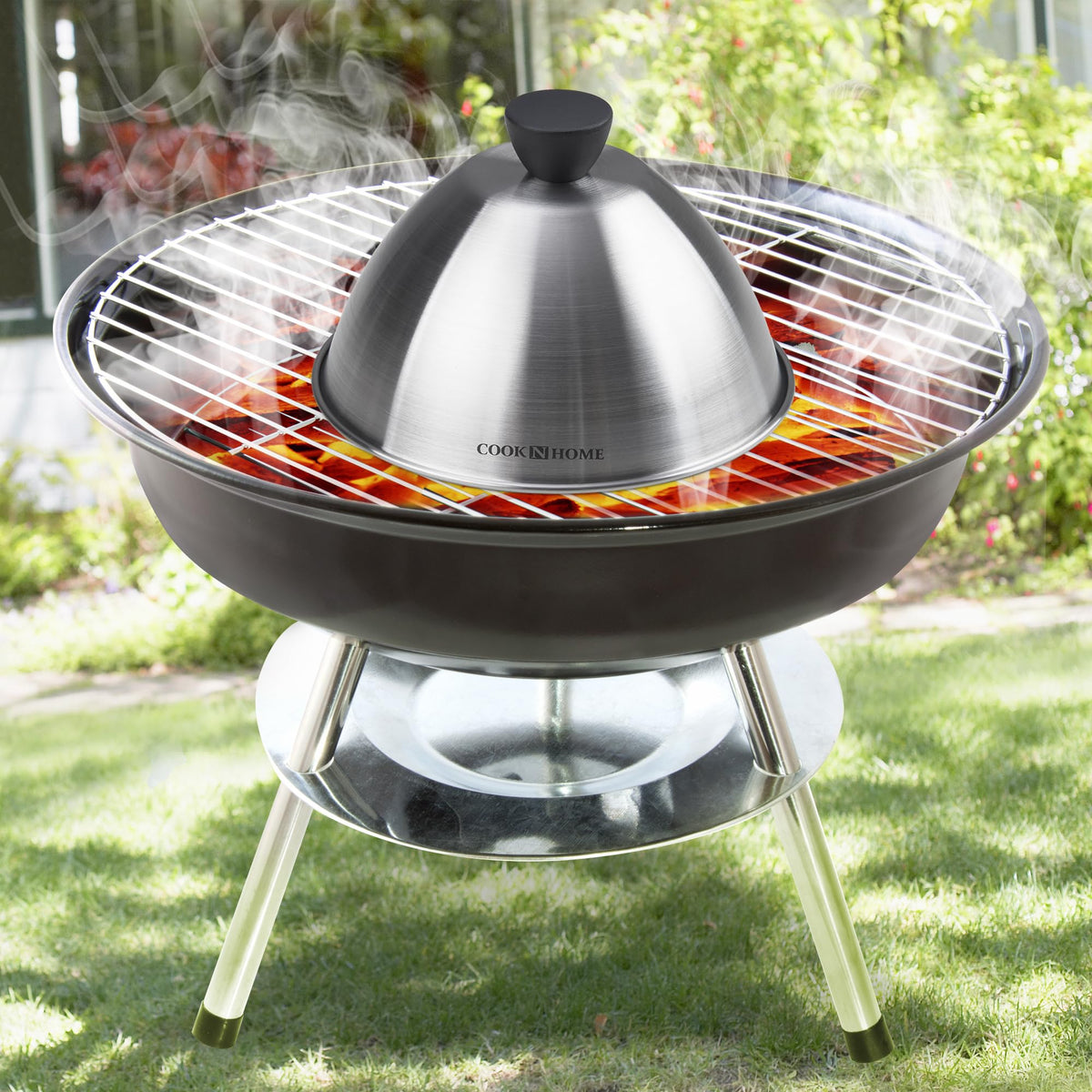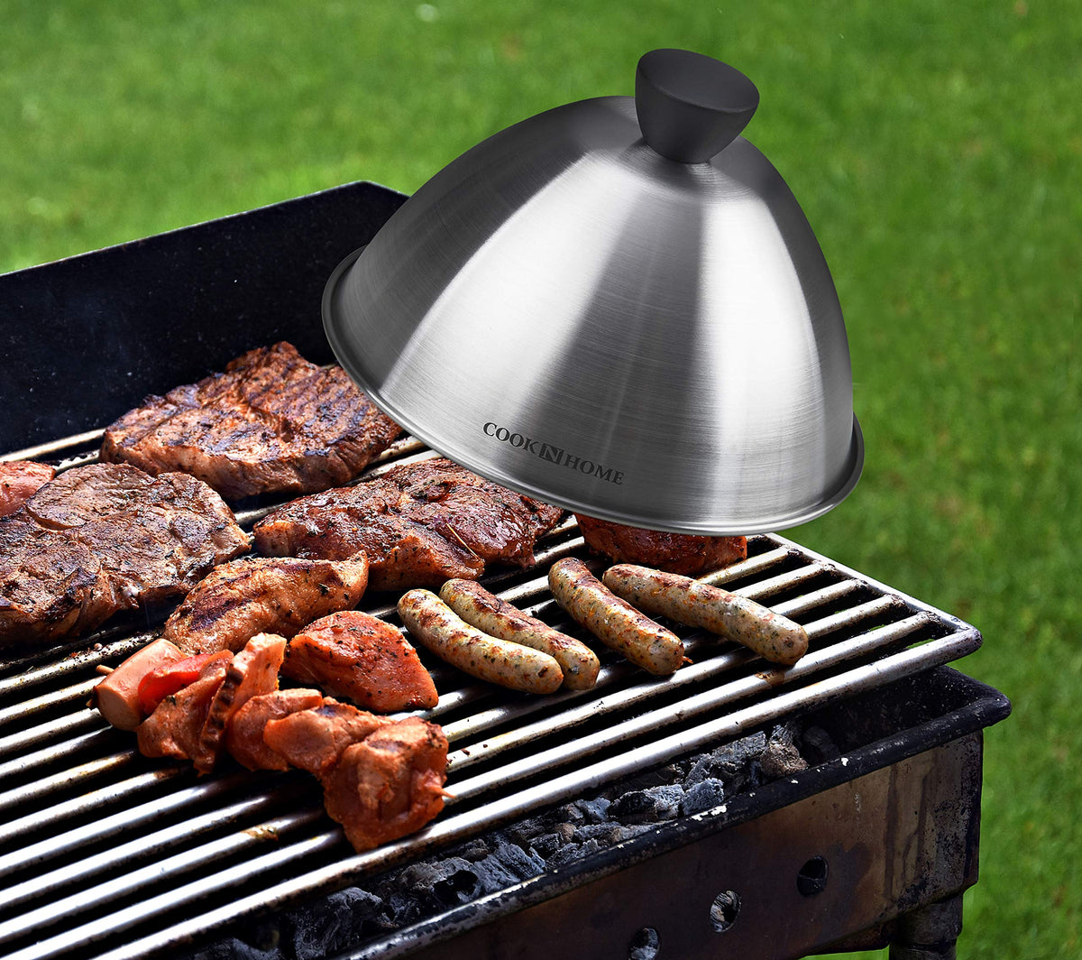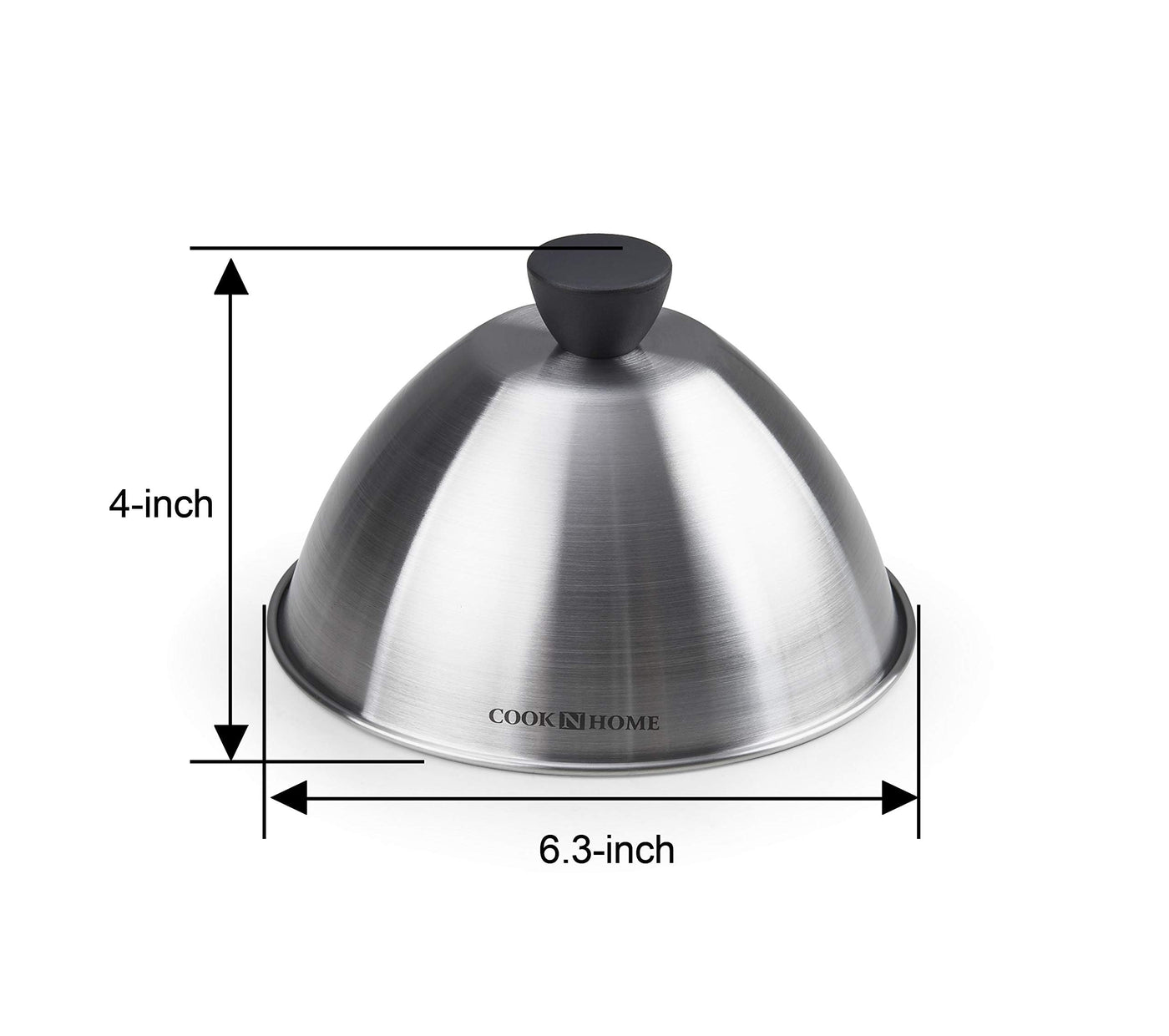 • Q: What material is the Cook N Home Grill Cooking Steaming Dome made from? A: The Cook N Home Grill Cooking Steaming Dome is made of 18/10 stainless steel, ensuring durability and resistance to rust.