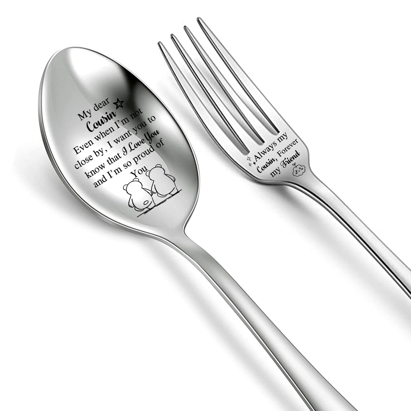 Cousin To Cousin Soup Fork And Spoon Set Inspirational Birthday Gift Coffee Dinner Spoons Ice Cream Dessert Cake Forks Graduatio