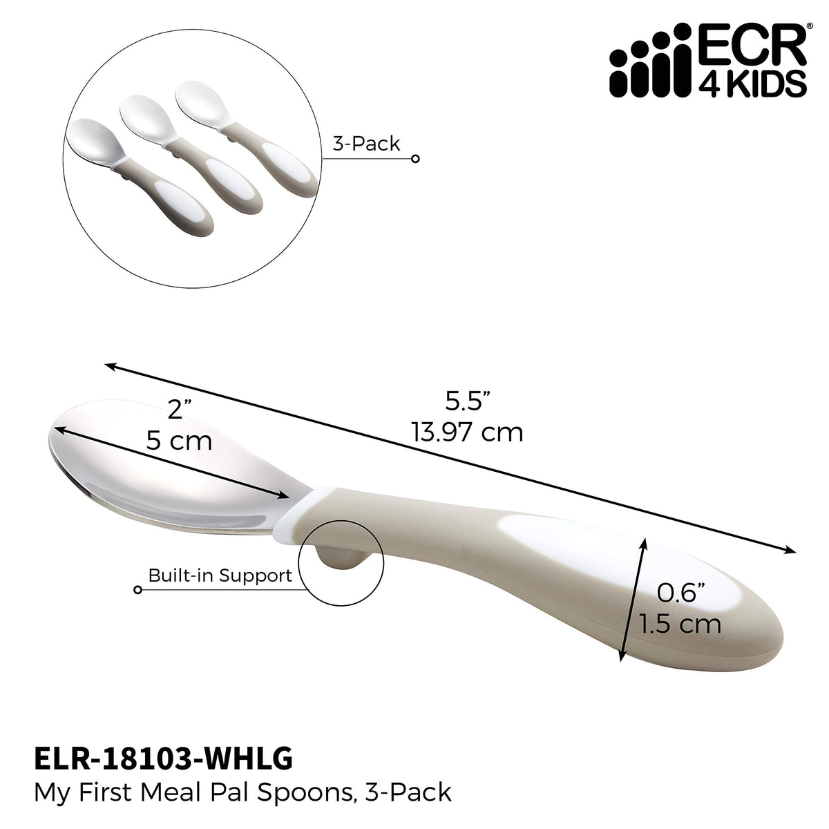 - Q: What is included in the ECR4Kids My First Meal Pal set? A: The set includes three toddler spoons, which can be paired with other ECR4Kids meal products like forks, divided plates, bowls, and cups, sold separately.