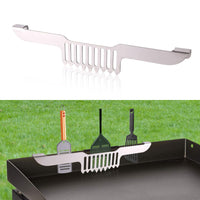 • Q: What is the purpose of the Grease Gate Spatula Holder? A: The holder prevents food from falling off the grill pan while allowing oil to drain out efficiently, making it ideal for outdoor cooking.