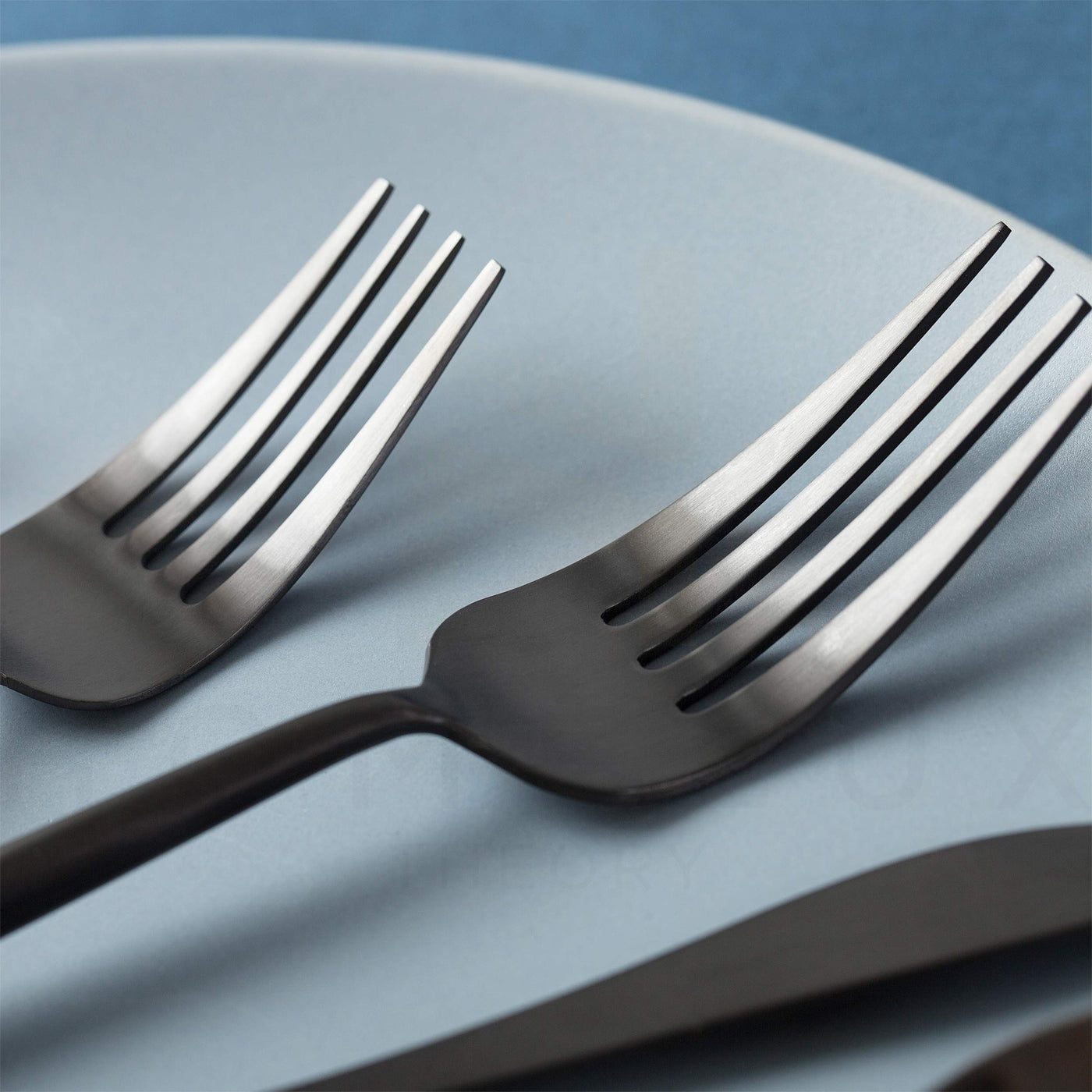 - Q: What style does the flatware set feature? A: The flatware set features a timeless and contemporary design with a matte black finish, making it suitable for various dining themes and occasions.