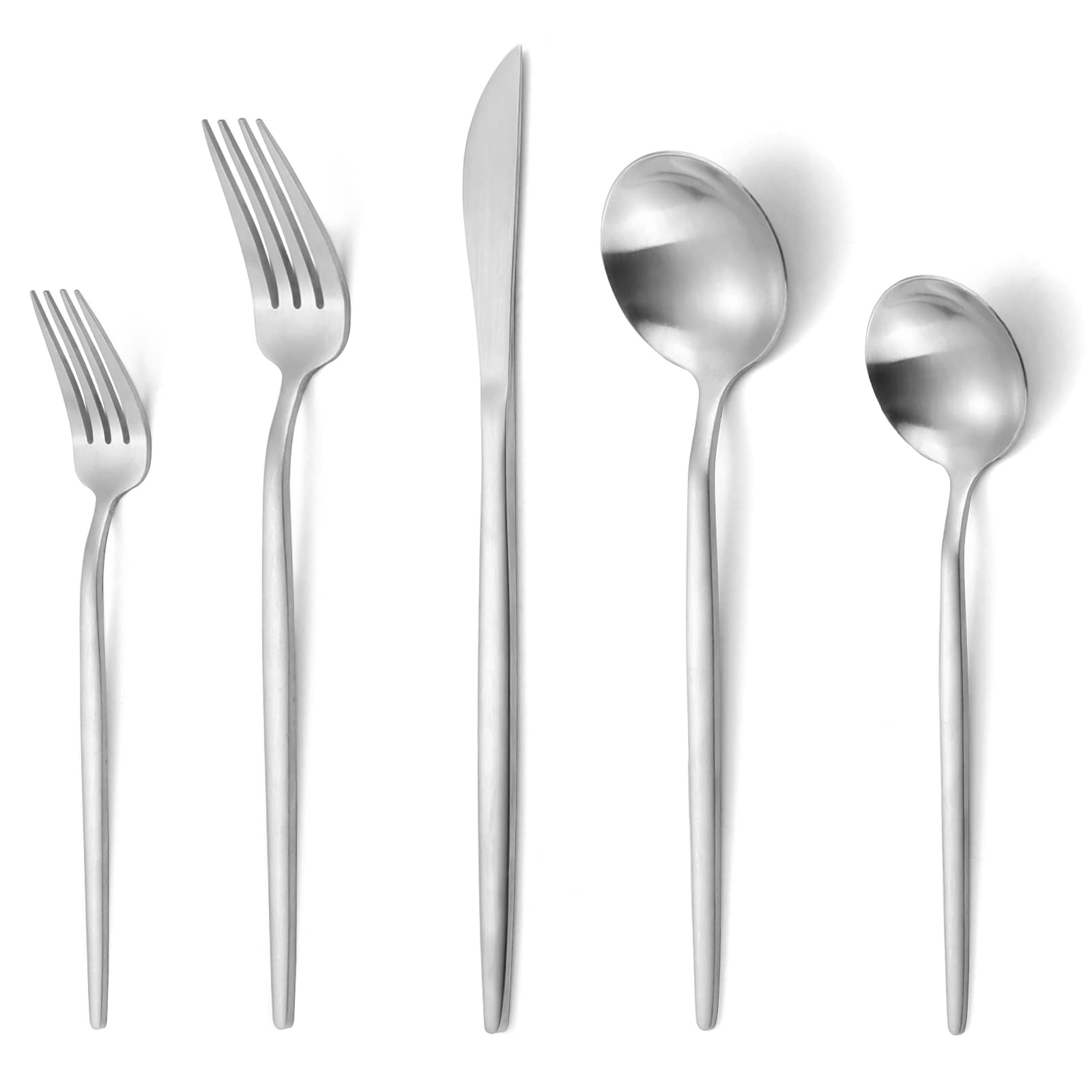 Matte Silverware Set, Vanvro 20-Piece Stainless Steel Flatware Set, Satin Finish Tableware Cutlery Set, Service For 4, Home And