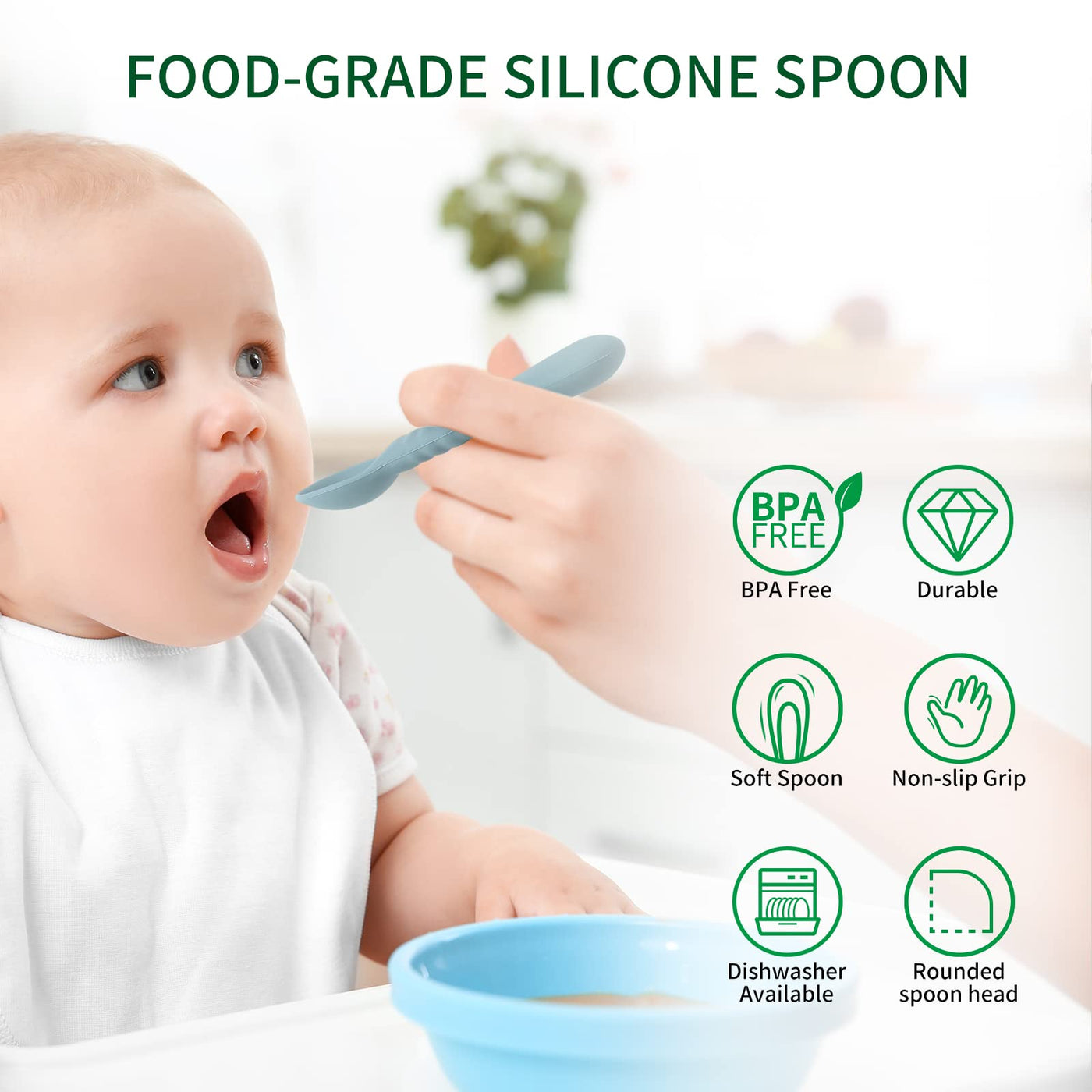 - Q: Can I use these spoons for purees and other foods? A: Yes, these silicone spoons are versatile and can be used for various types of baby food, including purees, making them perfect for introducing solids.