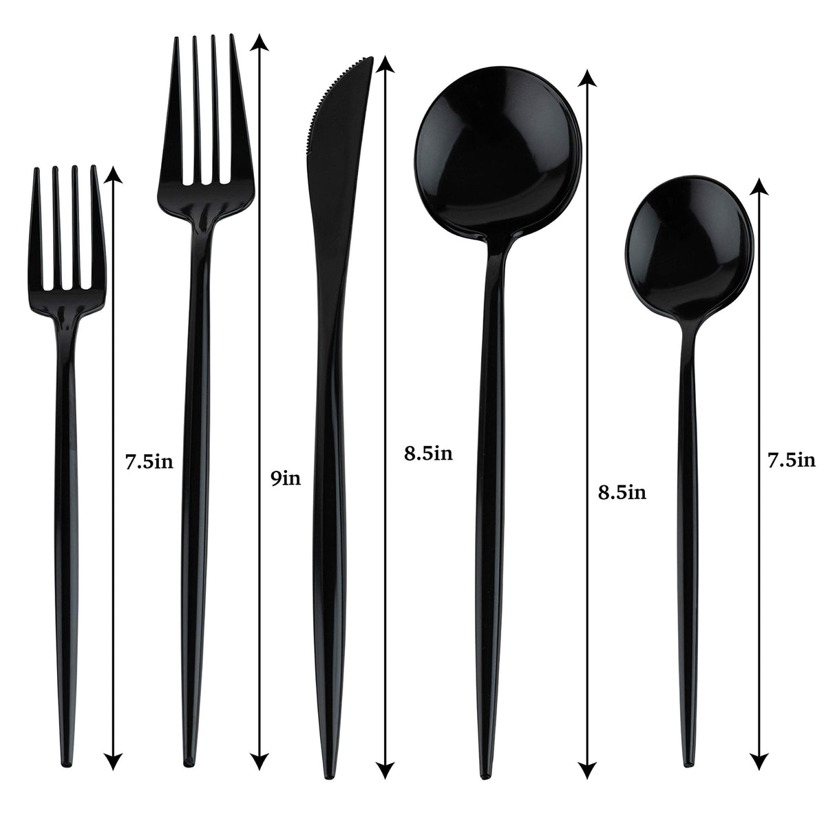 • Q: What colors are available for the flatware set? A: This particular set is available in a sleek black color, adding a modern touch to your dining experience.