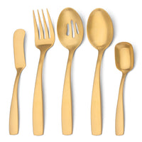 O.C.E. 5-Piece Matte Gold Serving Flatware Silverware Set, Utensil Set Of Stainless Steel, Satin Finish, Hostess Tableware Servi