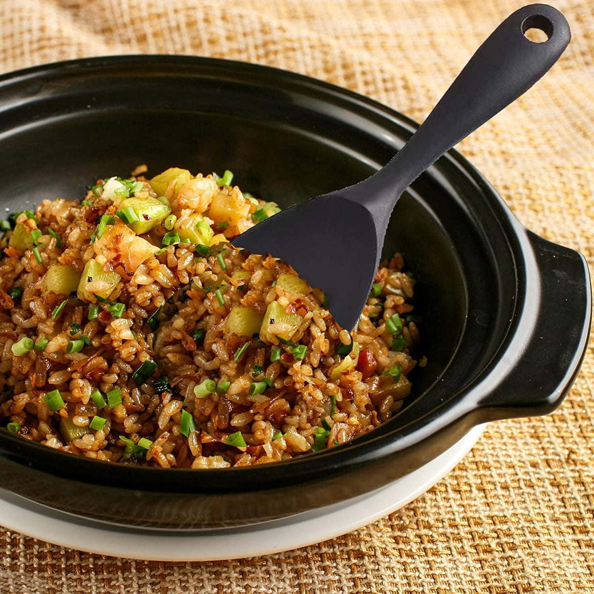 Ramkuwar Silicone Rice Spoon Non Stick Rice Scooper Heat Resistant Kitchen Gadge Rice Spoon Paddle Cooking Utensil Rice Spatula Rice Cooker Spoon For Rice Salads Mashed Potato Black