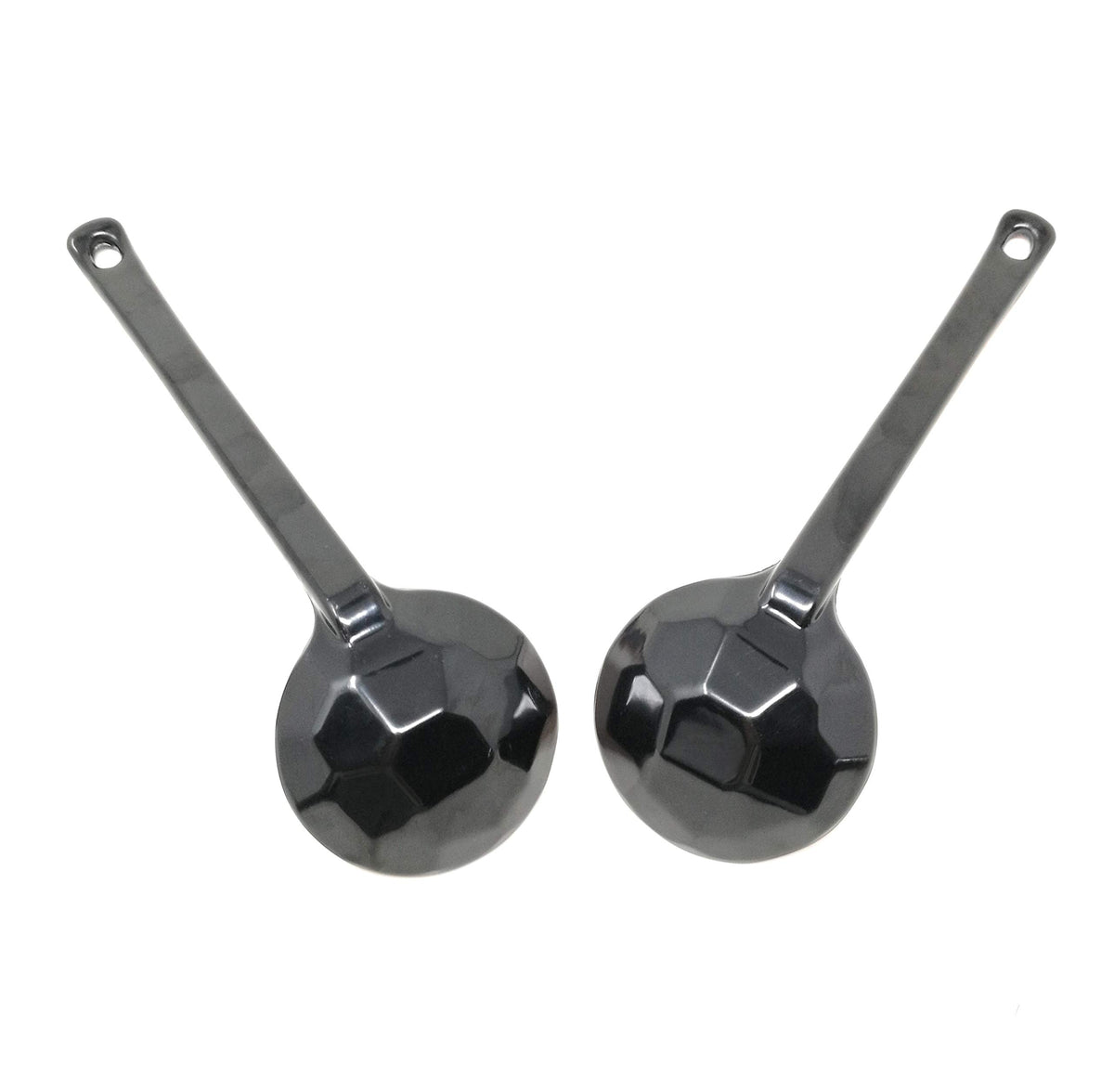 • Q: What colors are the spoons available in? A: The spoons feature a sleek glossy appearance with a red front and black back.