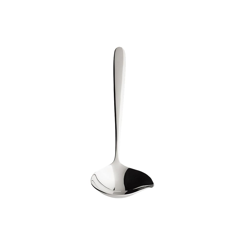 • Q: What design features does the Daily Line gravy ladle have? A: The ladle features curved lines and handles with rounded ends, providing an ergonomic design that enhances usability.