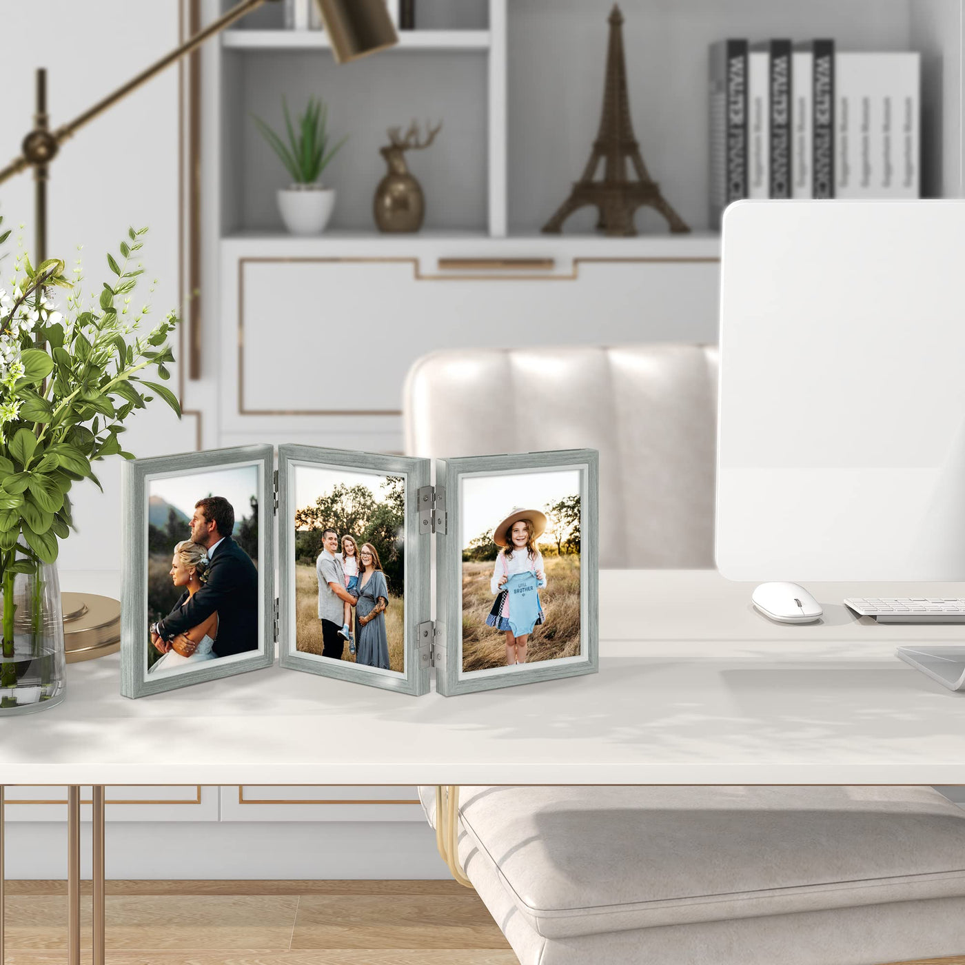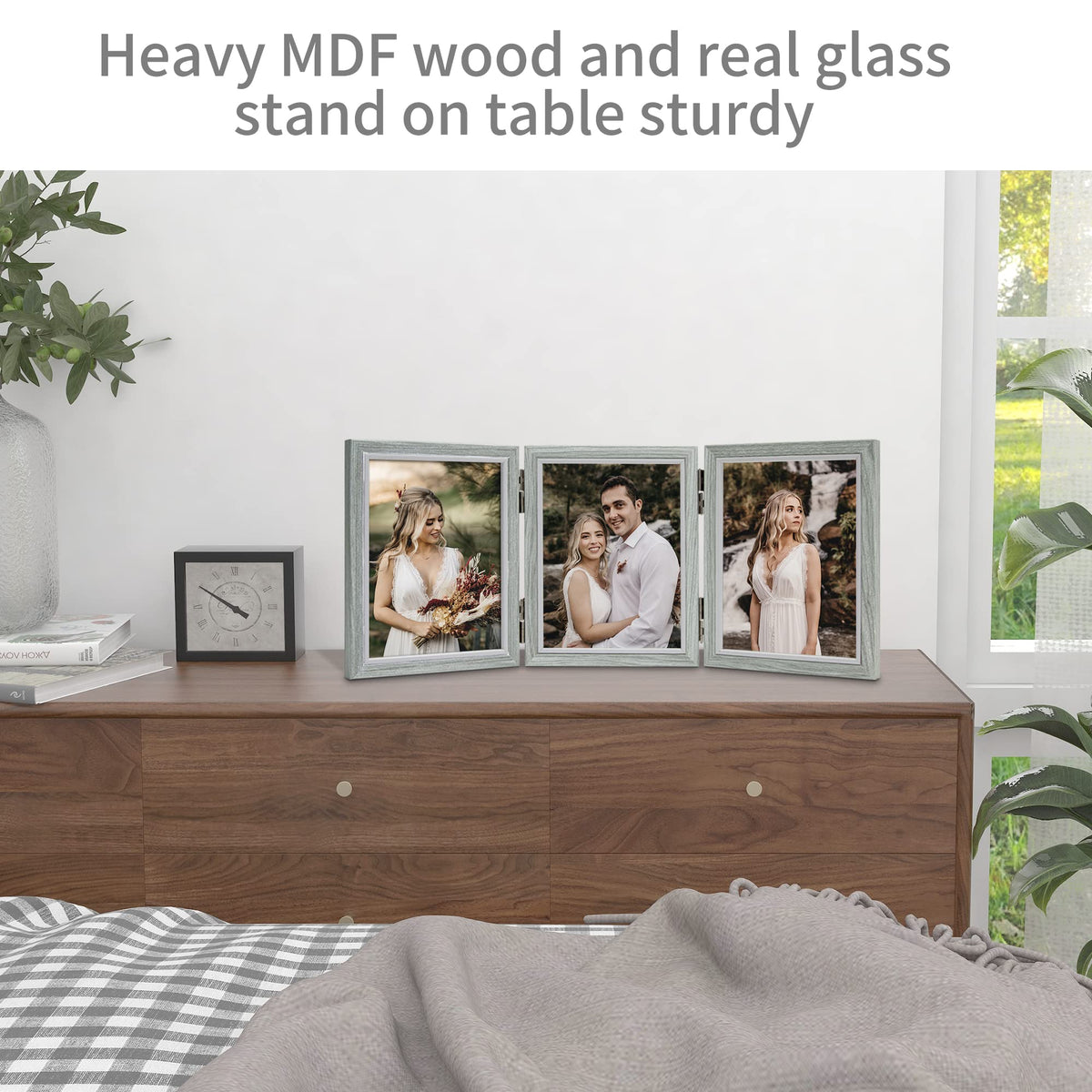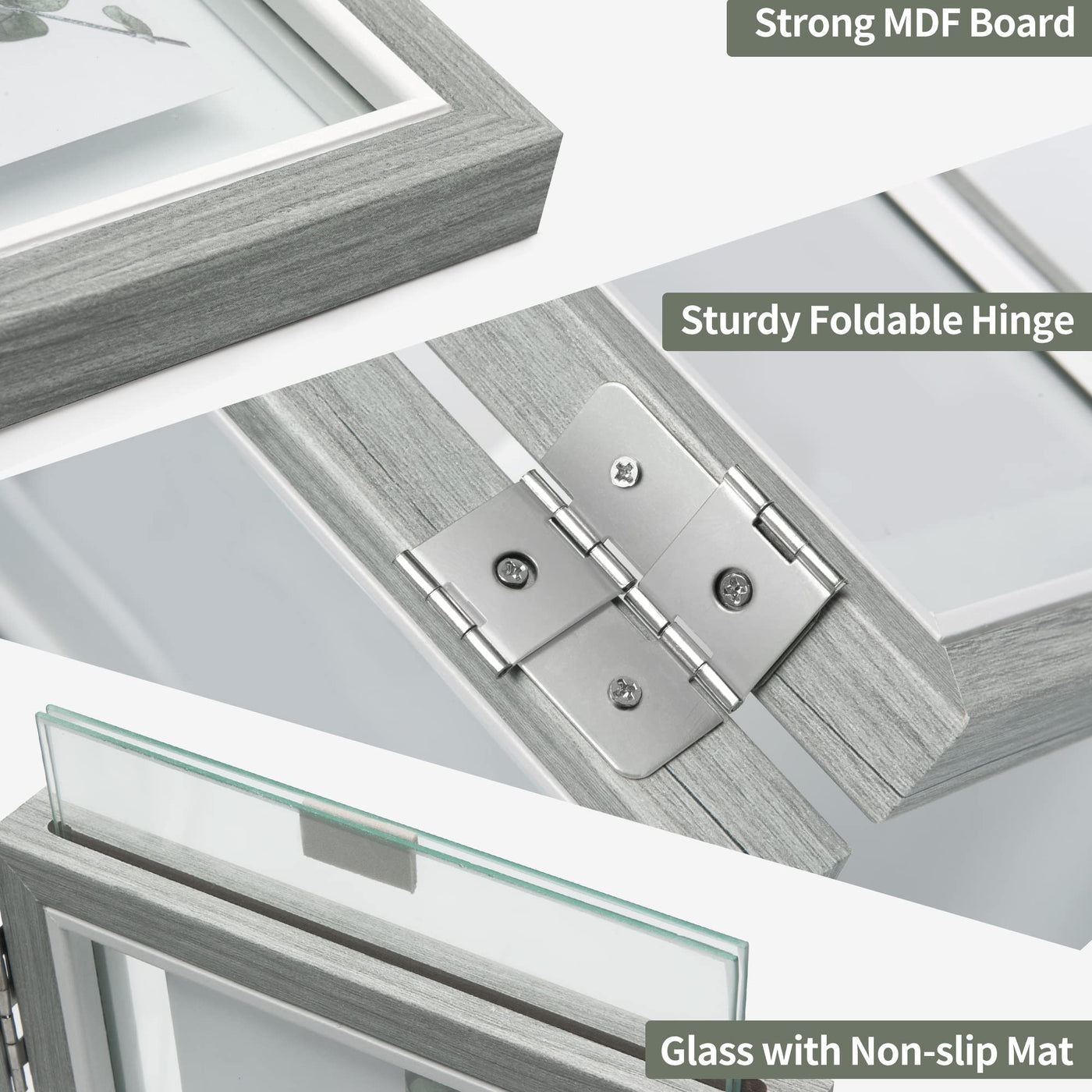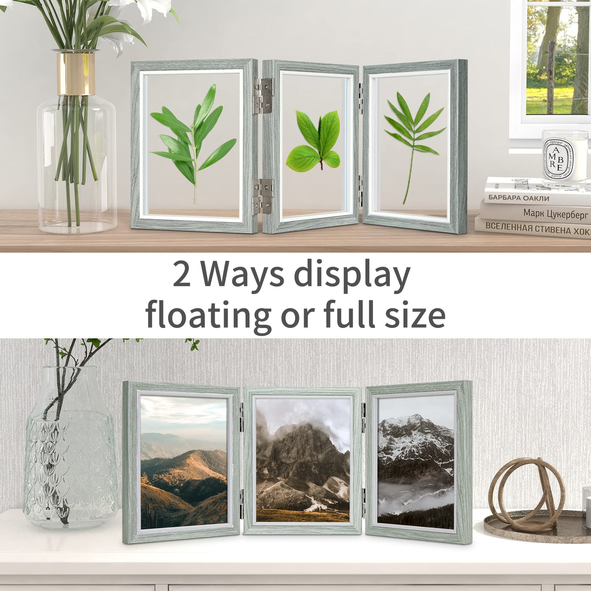 Afuly 7x5 Photo Frames Collage for Wall Multiple Picture Frames fit 6x4, 5x3, 3x3.5 Photo Grey Floating Frame with Double Sided