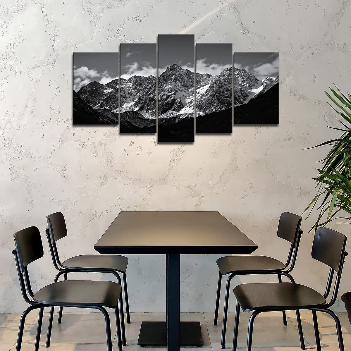 Canvas Wall Art Mountain Black And White Snow Mountain Landscape Picture 5 Pieces Prints On Canvas Modern Giclee Framed Artwork