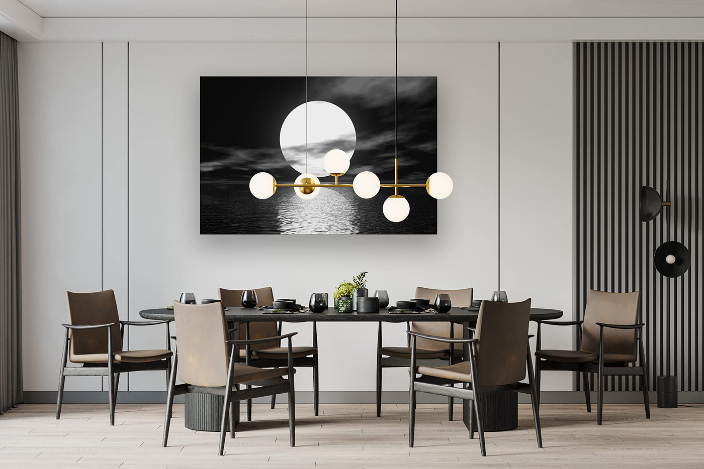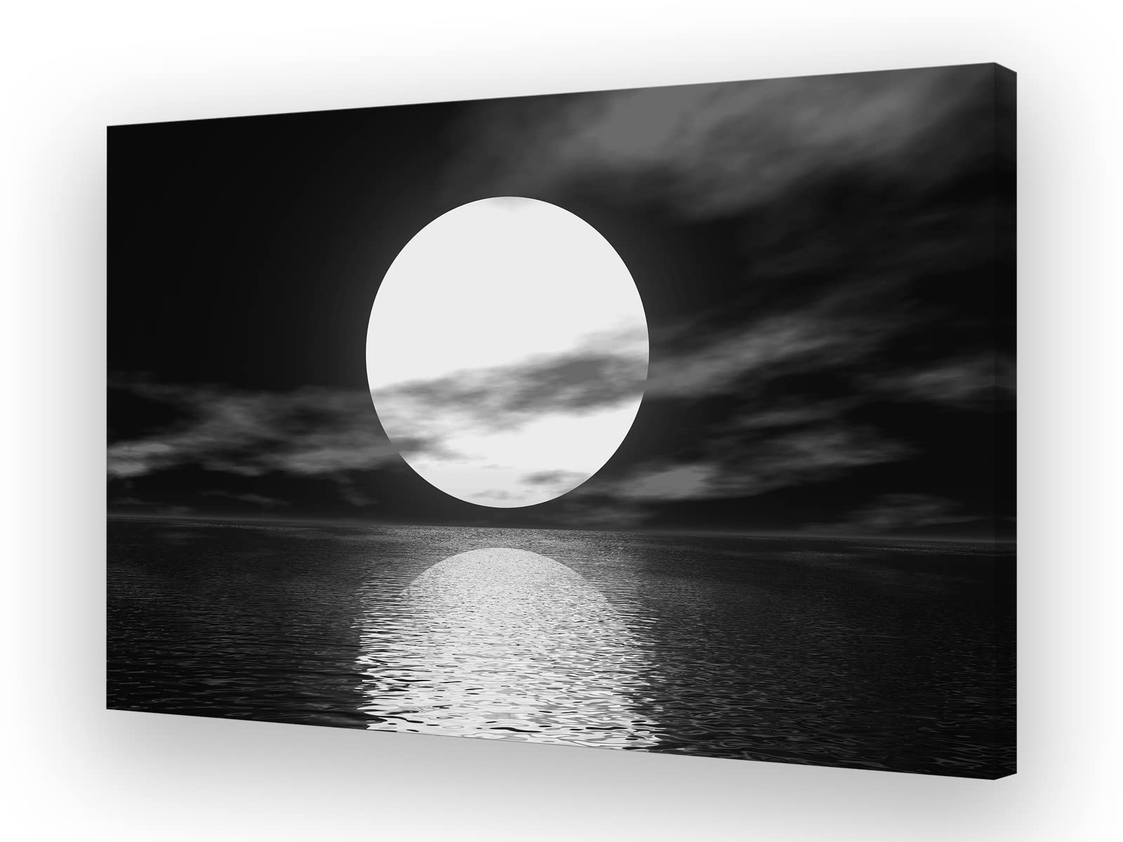 - Q: What style does this canvas art represent? A: This artwork features a black and white ocean scene with a full moon, making it a modern and captivating decorative piece.
