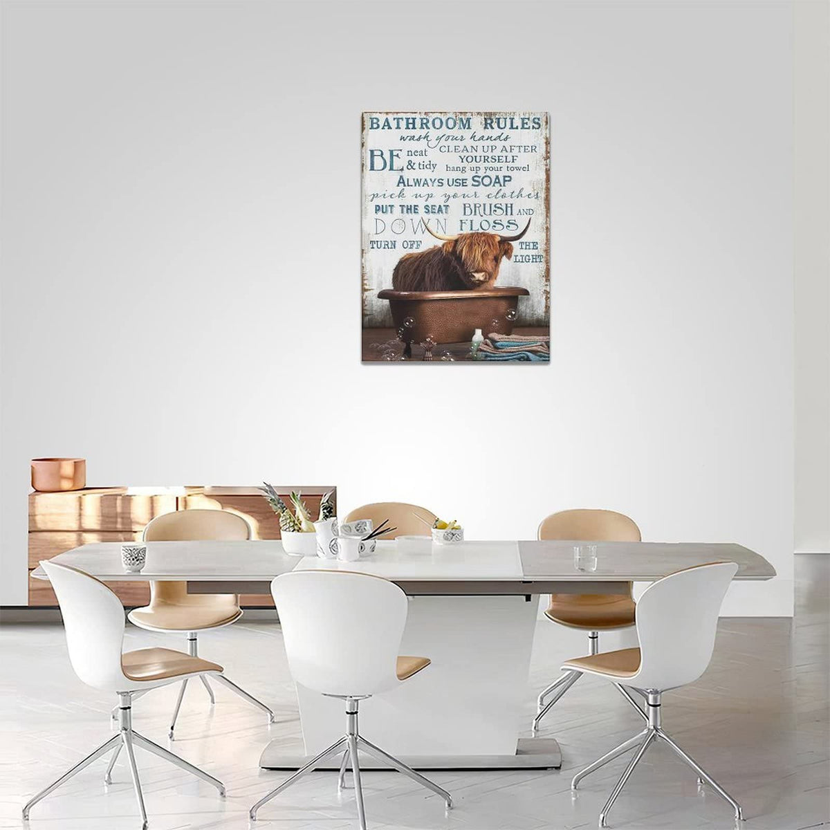 Citari Cow Wall Art Farmhouse Highland Cow Bathroom Rules Pictures Bathroom Signs Rustic Canvas Painting Funny Cow Framed Artwor