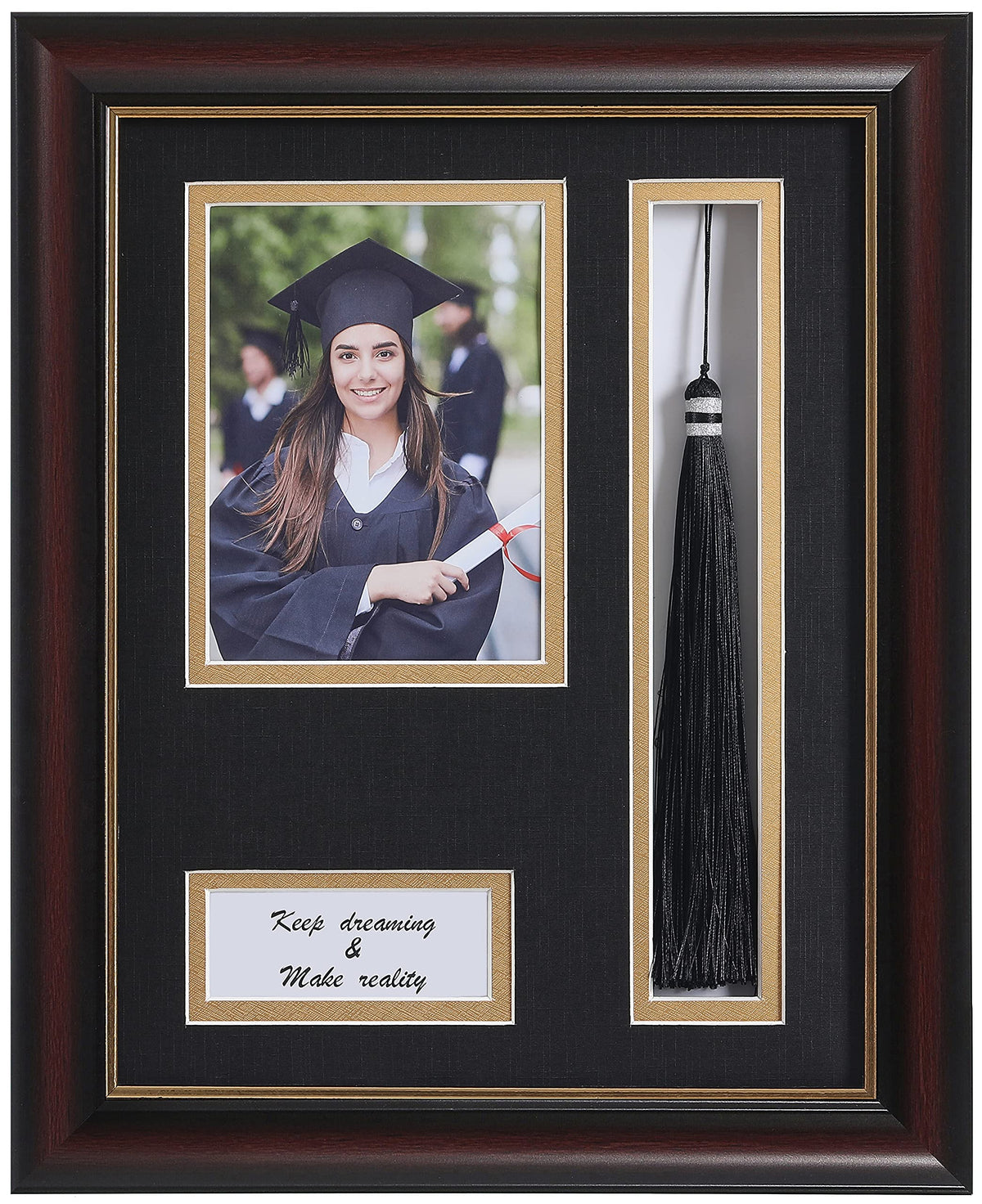 ELSKER&HOME 8.5 x 11 Graduation Frame with Tassel Holder for 4x6 Photo| 8.5x11 Shadow Box Picture Frame, Graduation Mahogany Fra