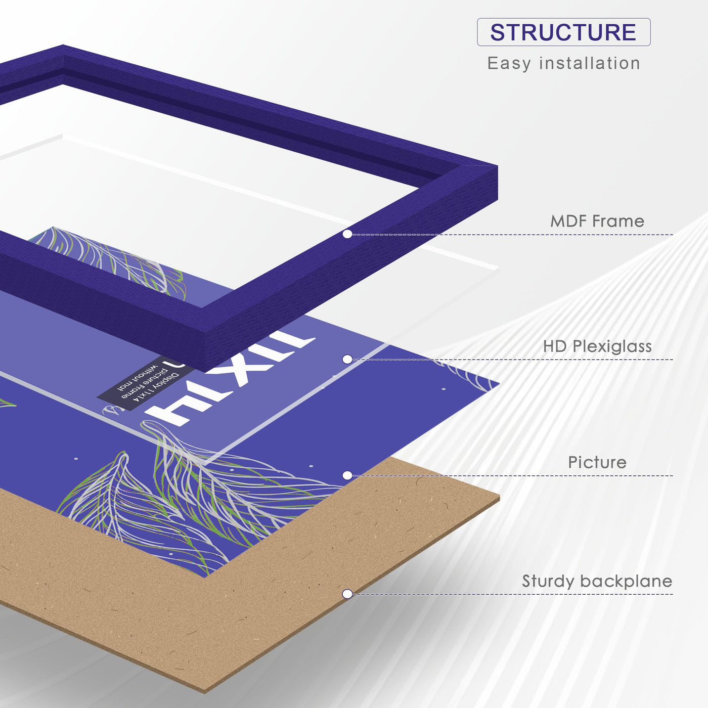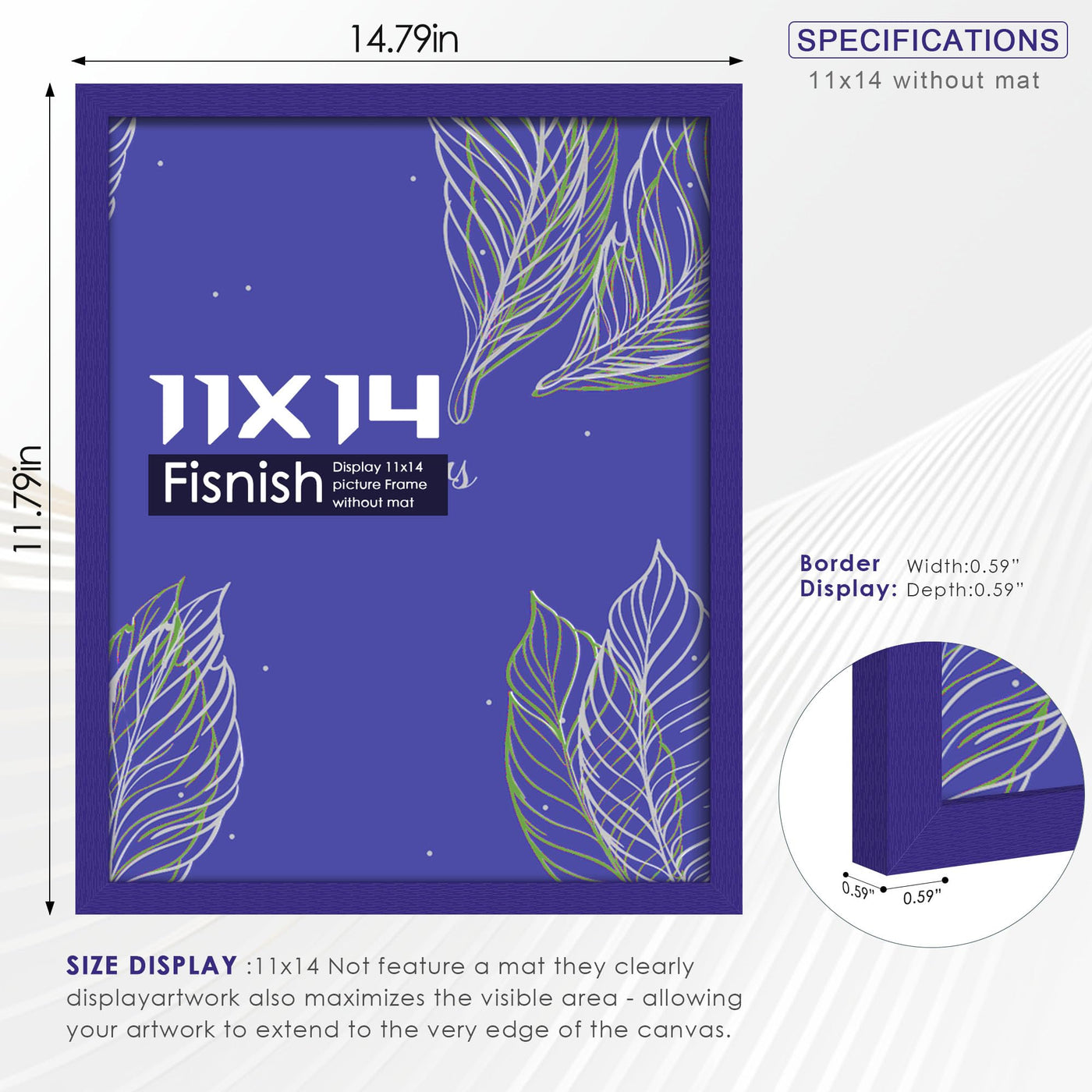 Fisnish 11x14 Picture Frame, for Tabletop Display, Horizontal or Vertical Wall Mounting, Blue