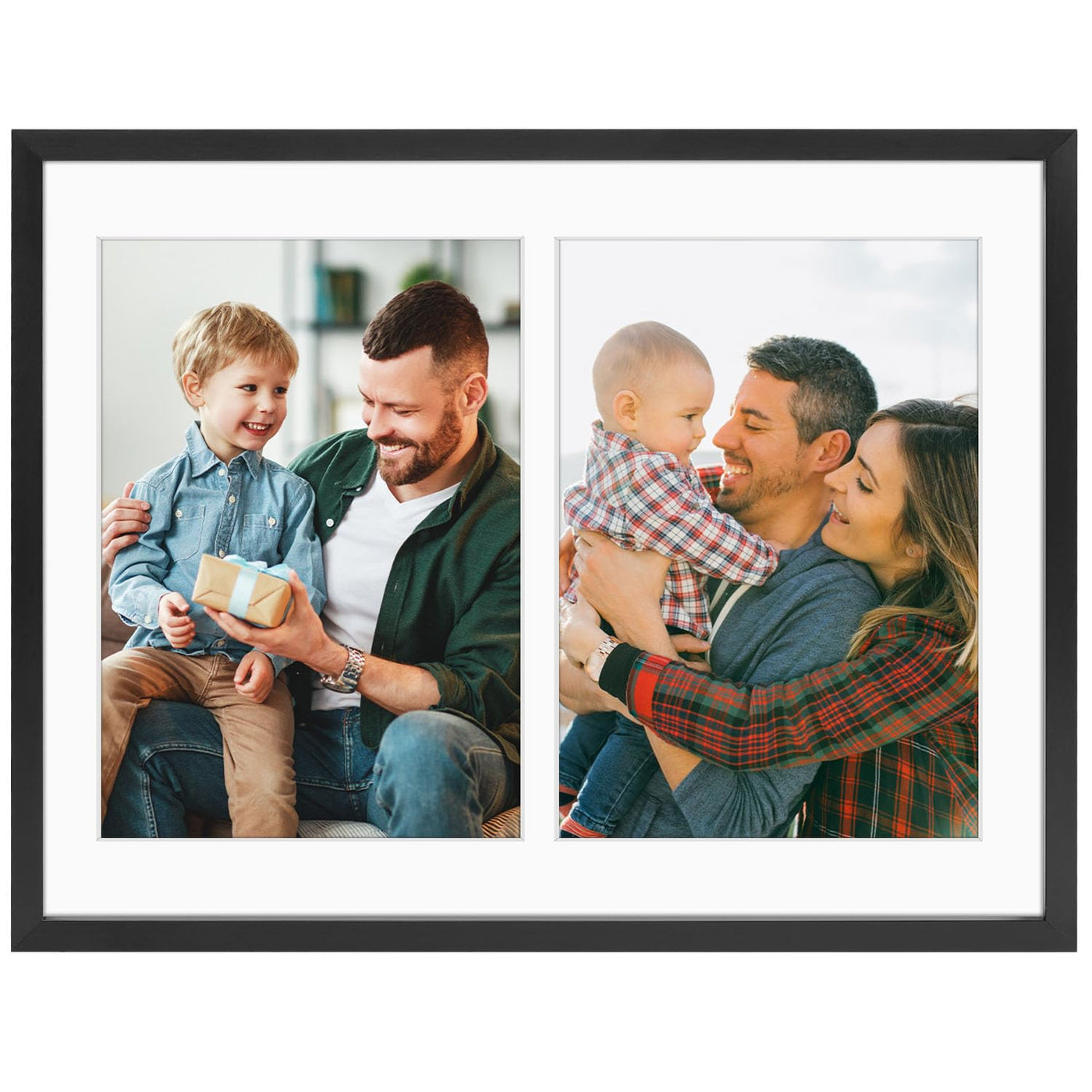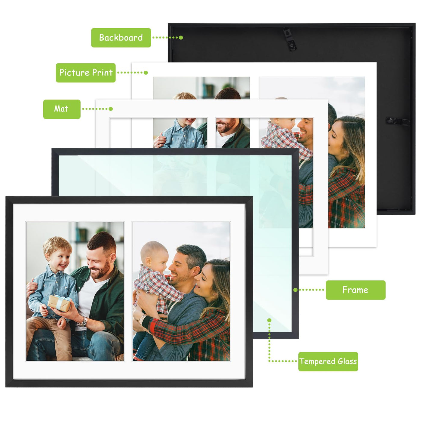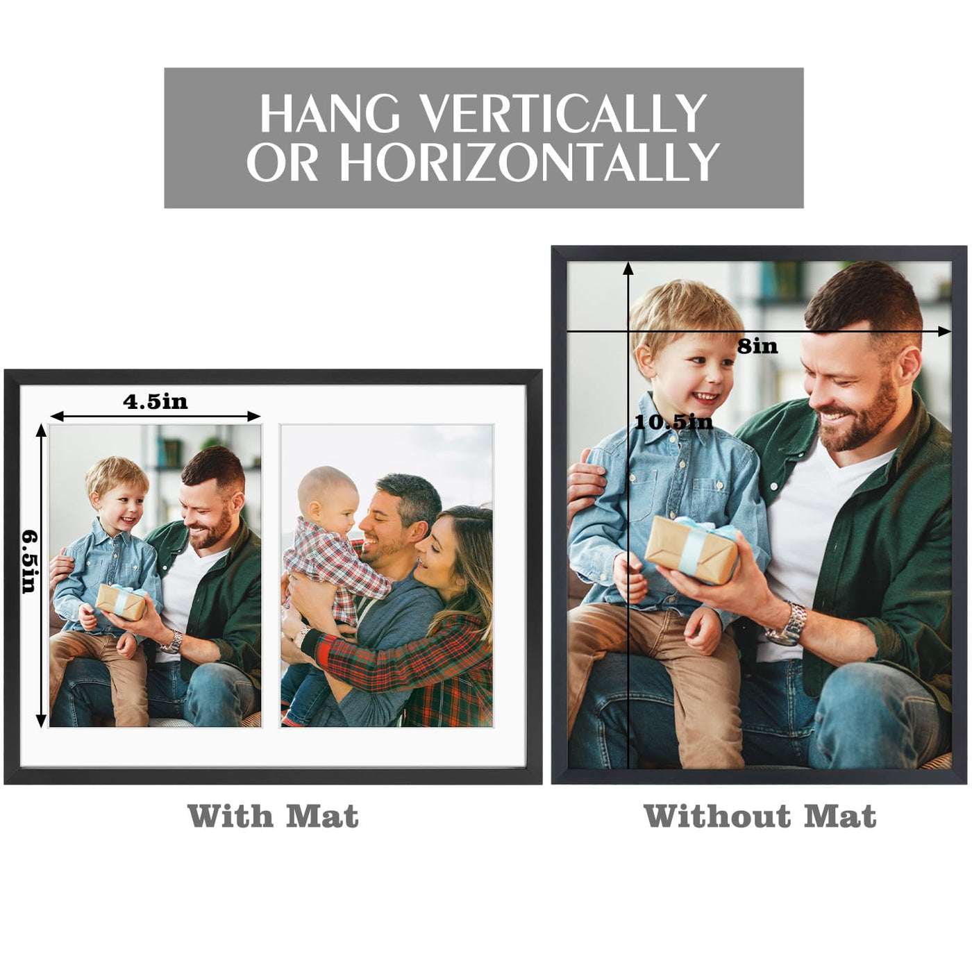 Golden State Art, 5x7 Aluminum Collage Frame, Displays 7x5 Pictures With 2 Openings Mat or One 8.5x11 Photo, Real Glass, Portrai
