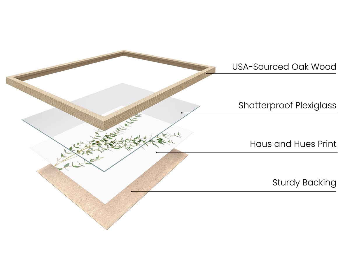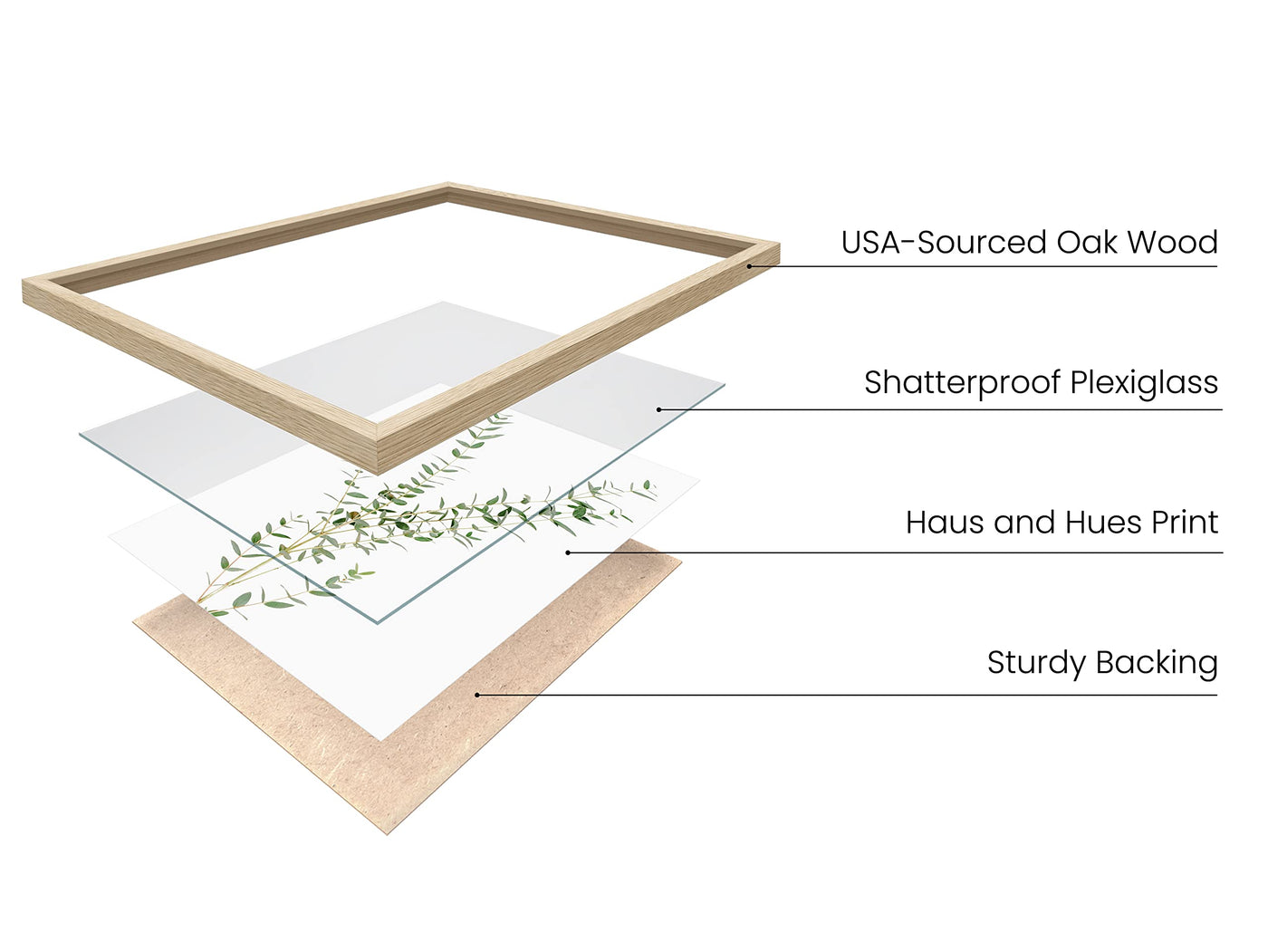 - Q: What materials are used in the framing of the prints? A: The prints are framed in Pennsylvania oak and are equipped with plexiglass covered by protective film.