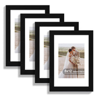 Hongkee 8x12 Picture Frame Set of 4, Made of Real Glass and Black Wooden Frame - Display 6x8 Picture with Mat or 8 x 12Poster Wi