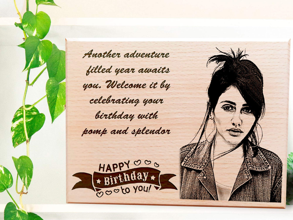 Incredible Gifts India Personalized Wooden Happy Birthday Frame For Girlfriend (10 X 8 Inch) Rectangular, Wall Mount