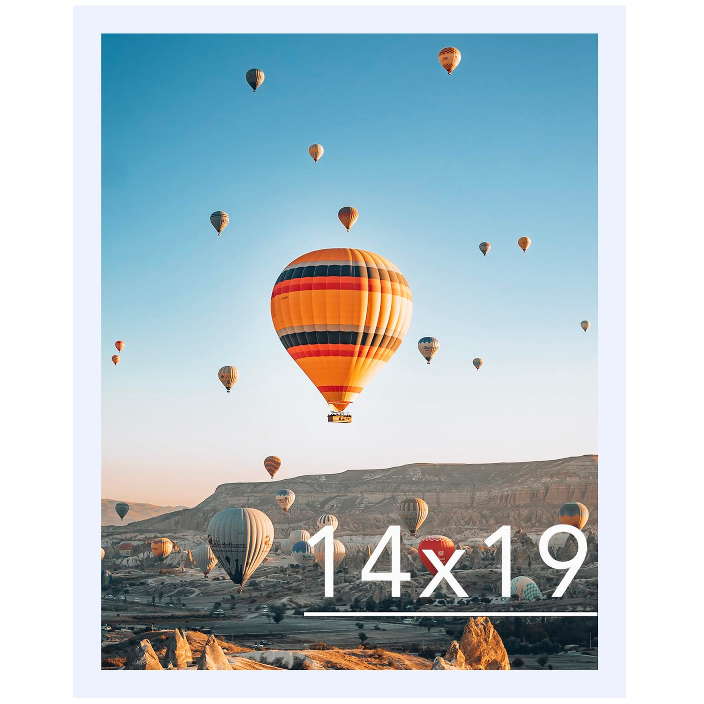 FRAME SIZE: The white picture frame fits 14x19 photos, simple and stylish, the frame opening display will be 0.5 inches smaller than the photo to better hold the photo instead of a defect.