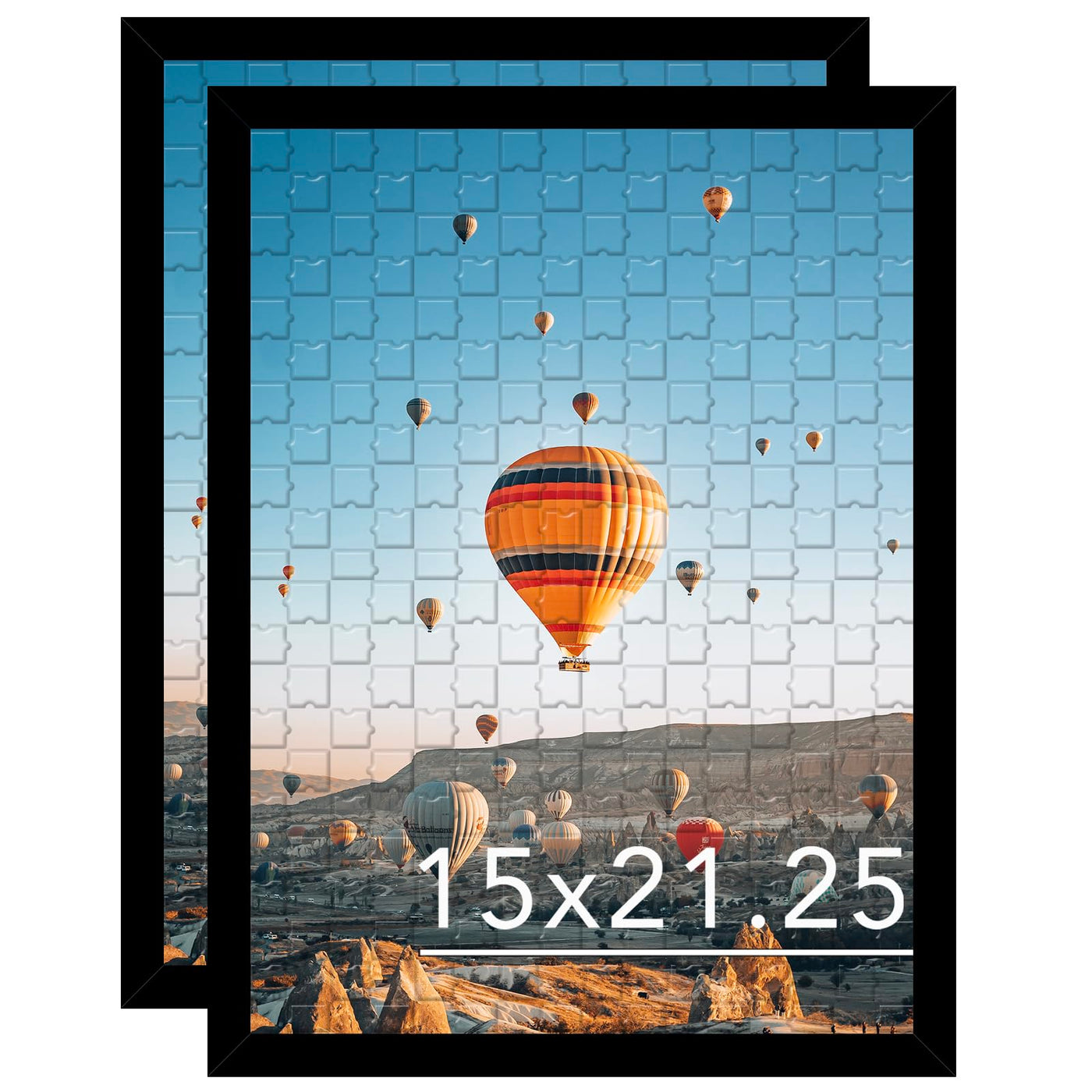 JCJMY 15x21.25 Puzzles Frame Set of 2 Black, Wall Hanging 15 x 21.25 Picture Frame for 15 by 21.25 Poster Photo Canvas Picture P