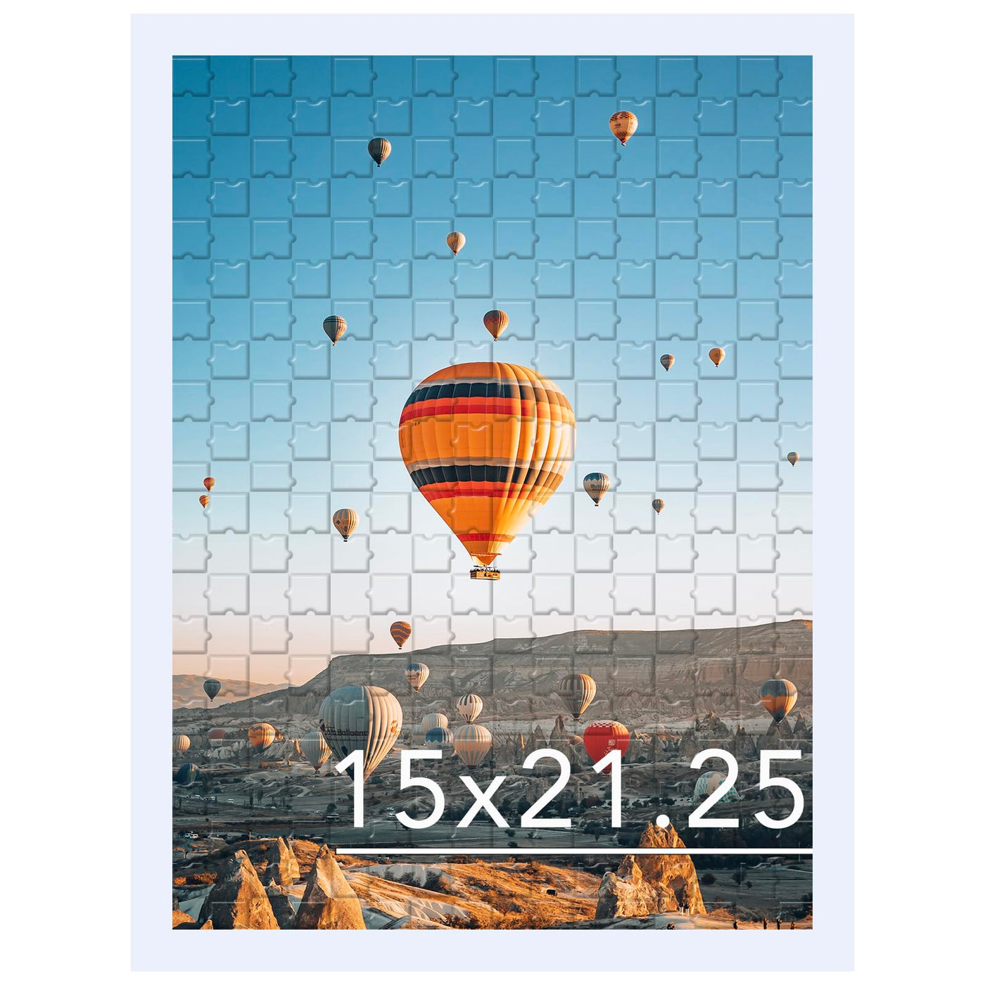 FRAME SIZE: The white 15 x 21.25 puzzle frame fits 15x21.25 puzzles posters photos pictures prints and canvas, simple and stylish, the frame opening display will be 0.5 inches smaller than the photo to better hold the photo instead of a defect.