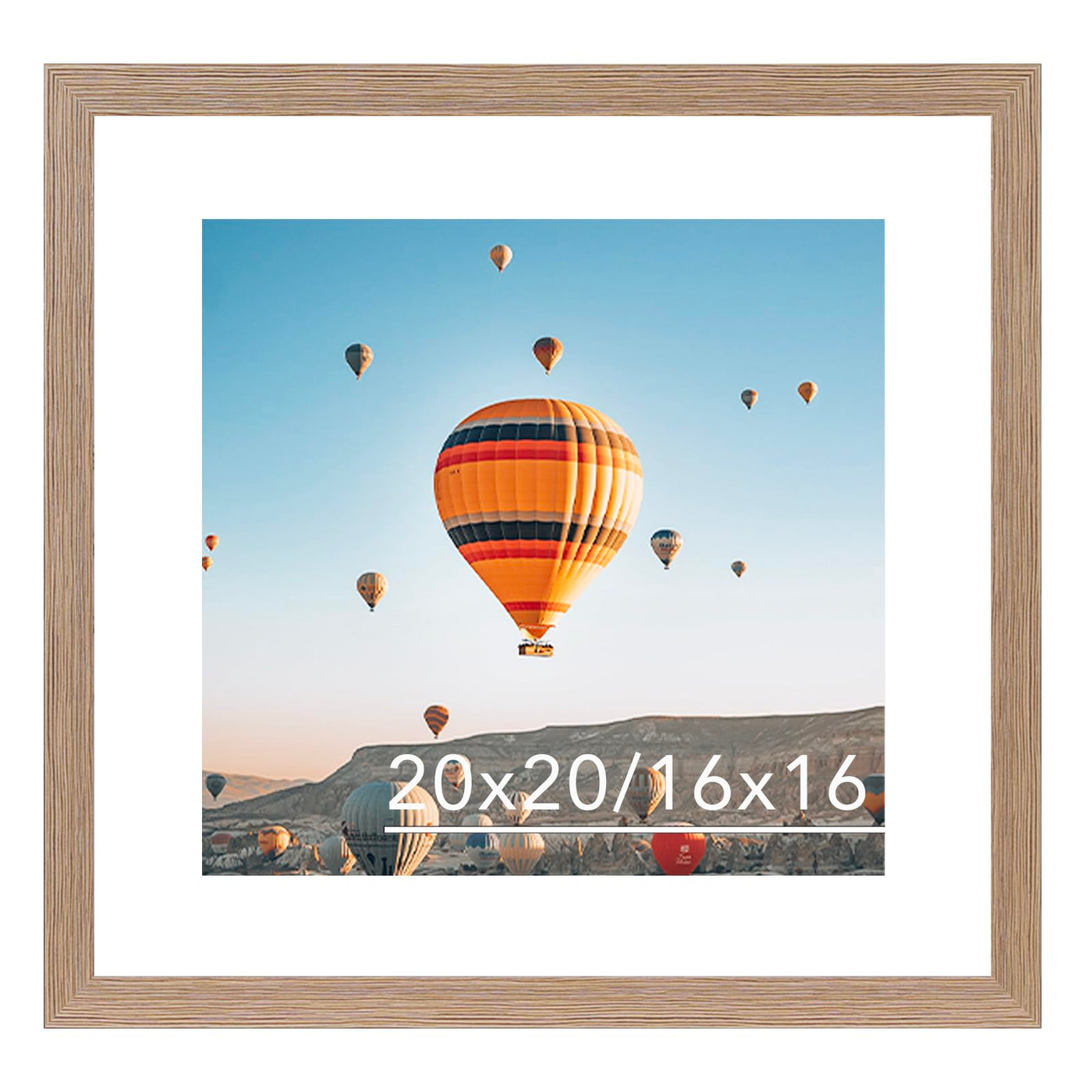 FRAME SIZE: The rustic brown picture frame fits 20x20 posters pictures photos without mat and 16x16 pictures with mat, simple and stylish, the frame opening display will be 0.5 inches smaller than the photo to better hold the photo instead of a defect.