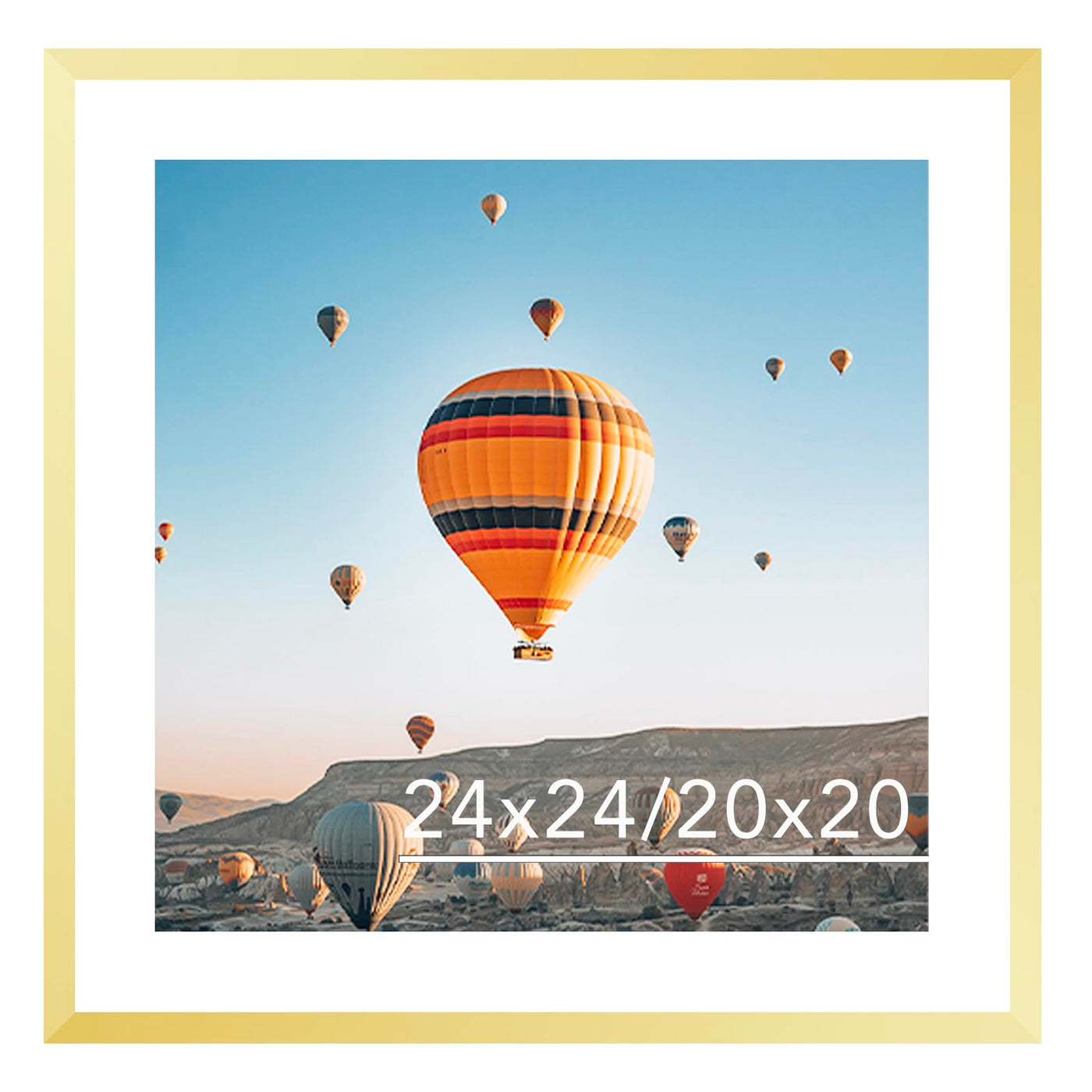 JCJMY 24x24 Picture Frame Gold with 20x20 Mat, Display Photo 20x20 with Mat or 24 x 24 Without Mat, Wall Hanging Large 24x24 Pos