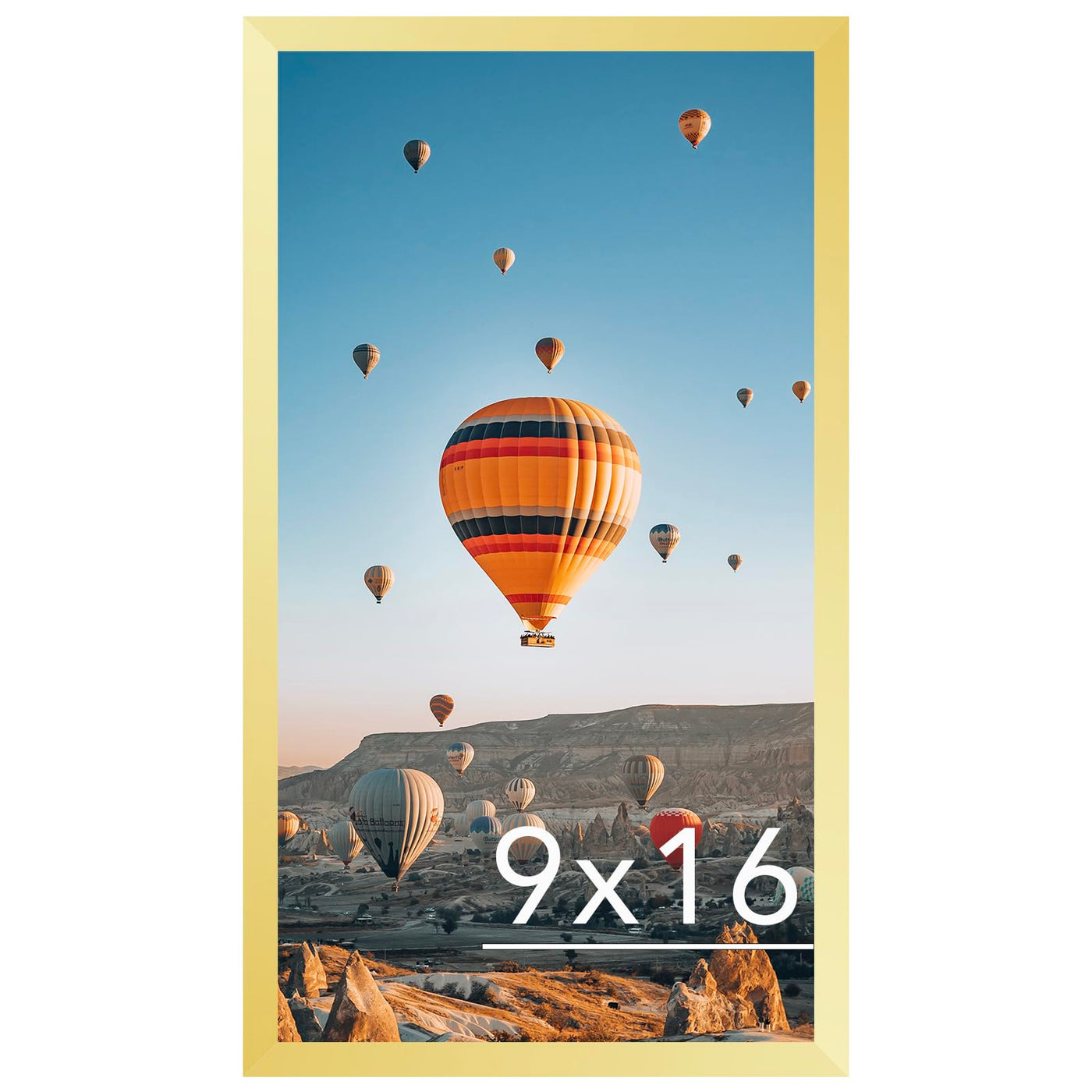 FRAME SIZE: The gold picture frame fits 9x16 posters photos pictures artworks and prints, simple and stylish, the frame opening display will be 0.5 inches smaller than the photo to better hold the photo instead of a defect.
