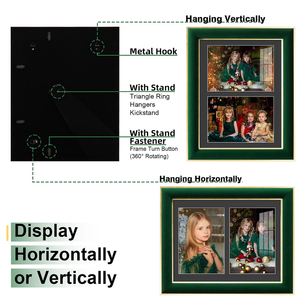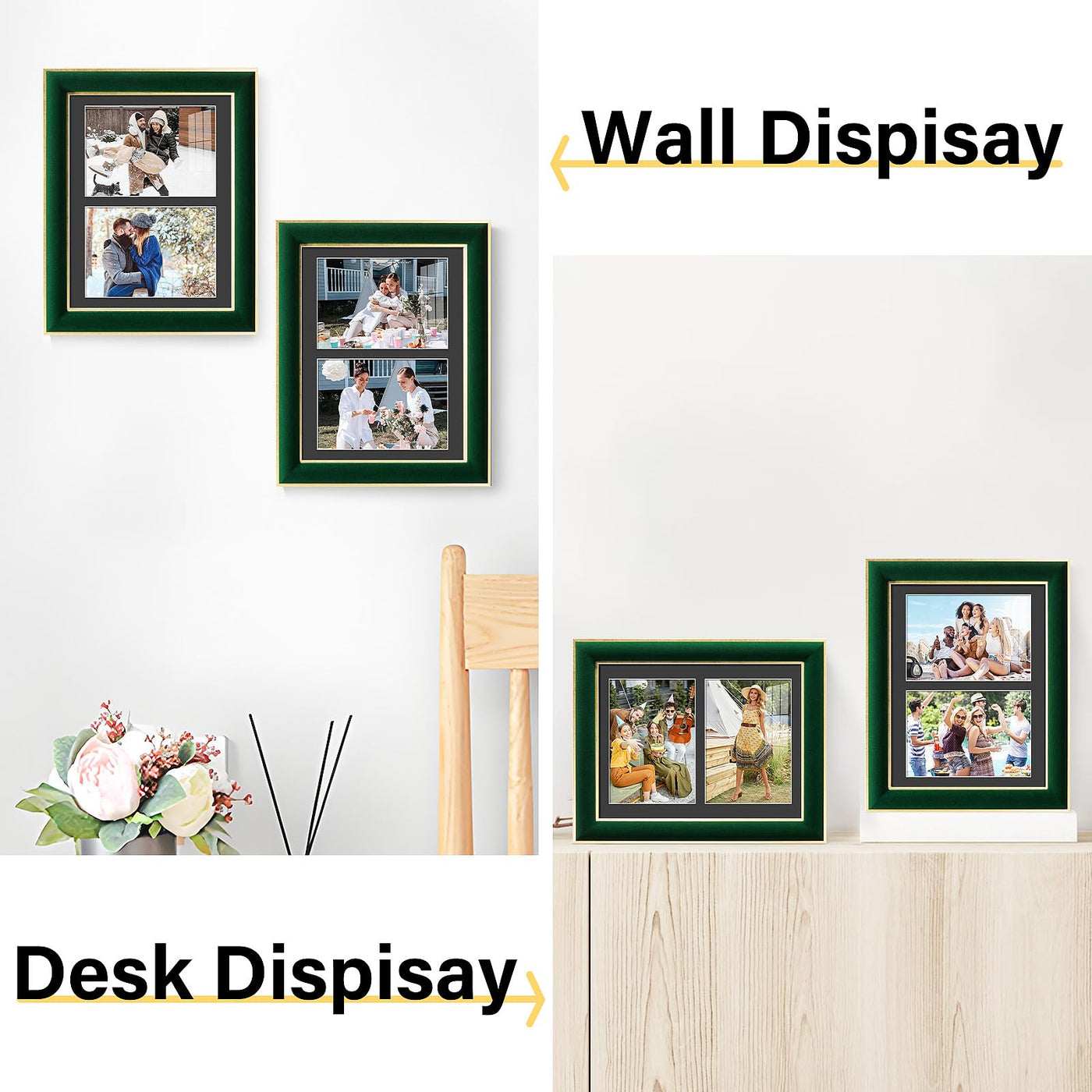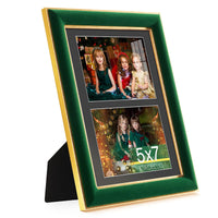 KSROECUD 8.5x11 Velvet Picture Frame with 2 Opening 5x7 Picture, HD Real Glass Green Velvet Photo Frame with Black White Border