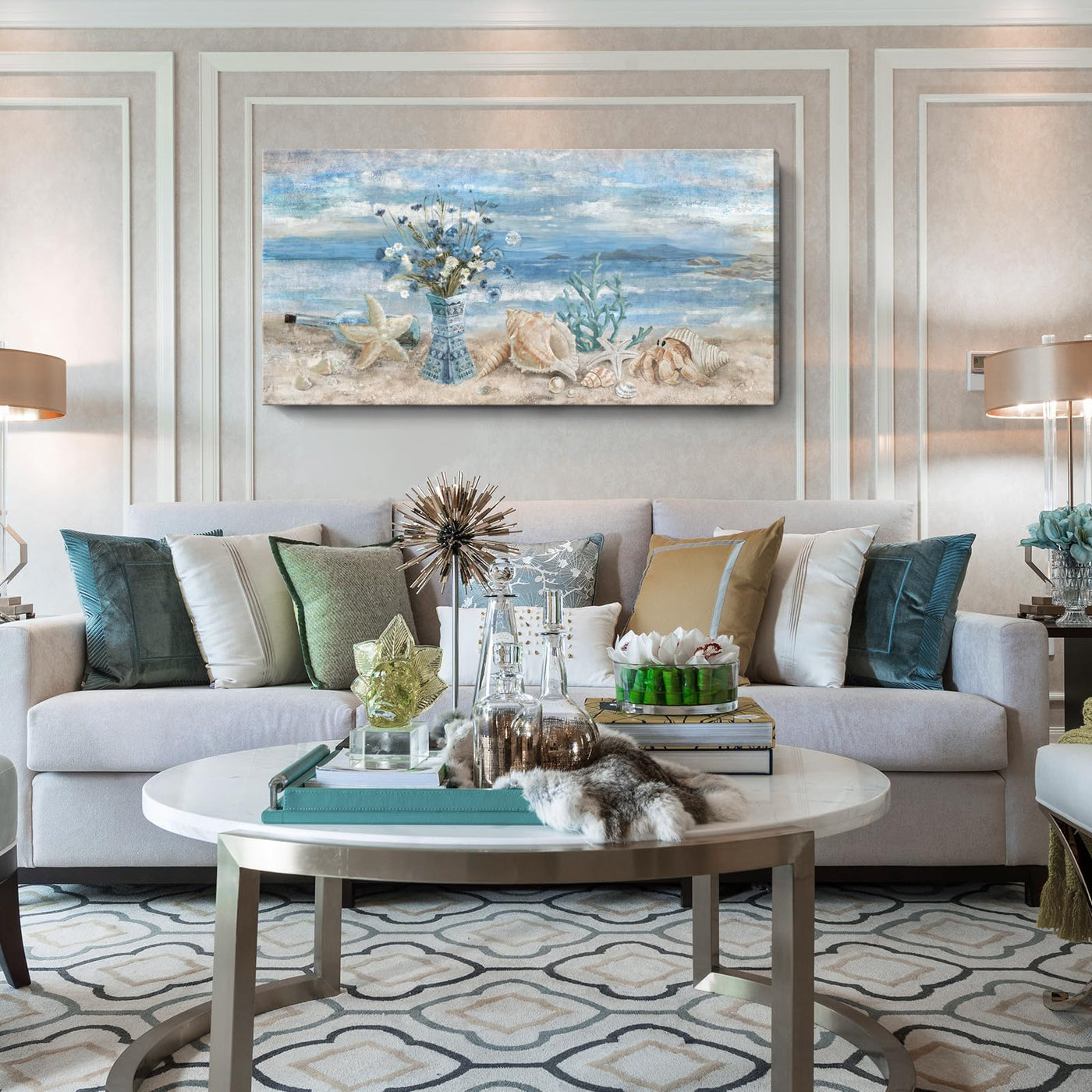 Large Canvas Wall Art For Living Room Seaside Painting Blue Sea View Ocean Theme Abstract Seascape Framed Artwork Coastal Beach