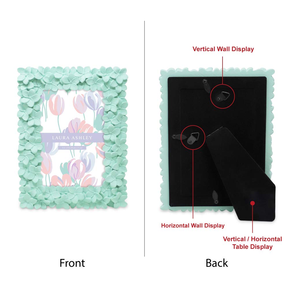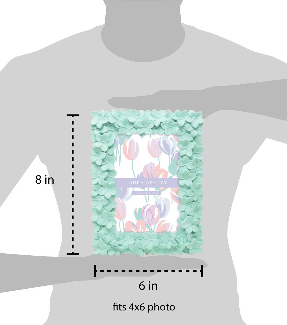 Laura Ashley 4x6 Mint Green Flower Textured Hand-Crafted Resin Picture Frame w/Easel & Hook for Tabletop & Wall Display, Decorat