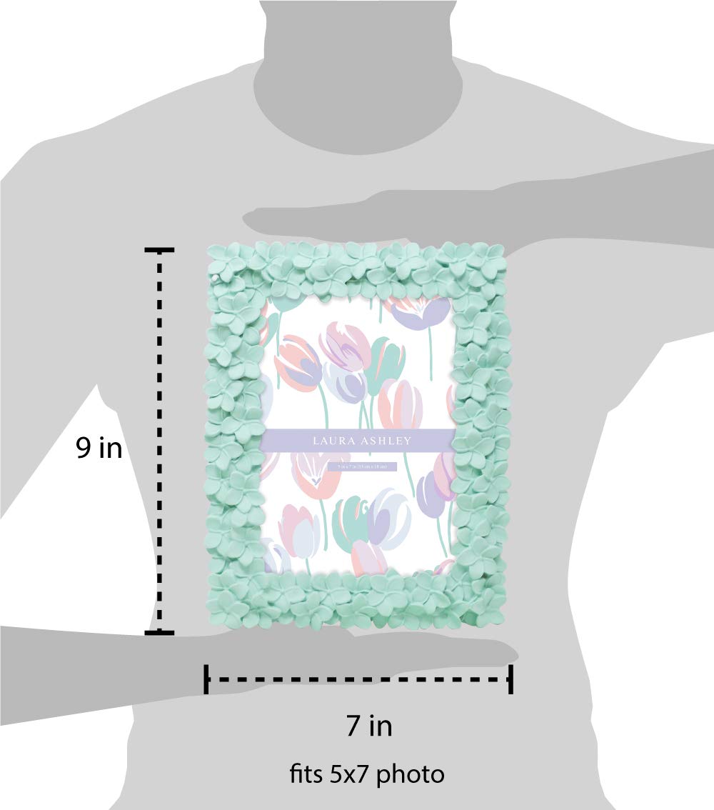 Laura Ashley 5x7 Mint Green Flower Textured Hand-Crafted Resin Picture Frame w/Easel & Hook for Tabletop & Wall Display, Decorat
